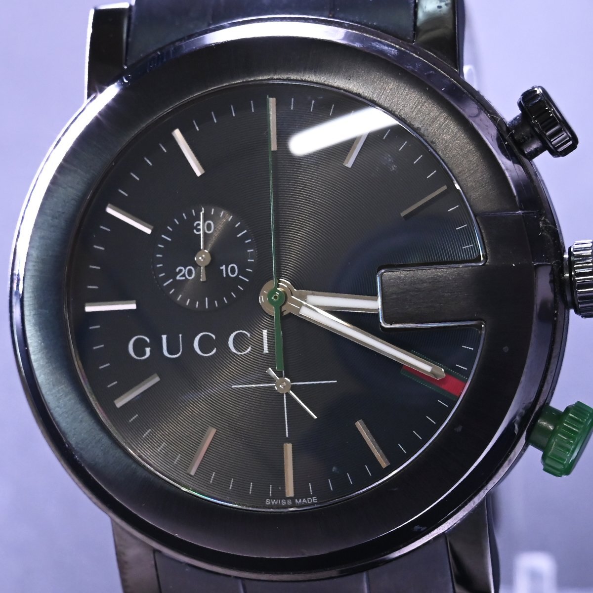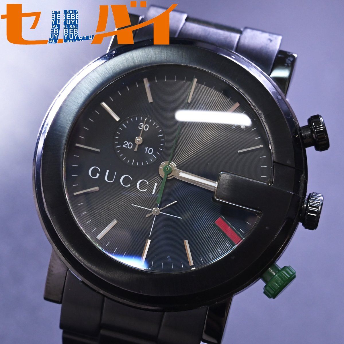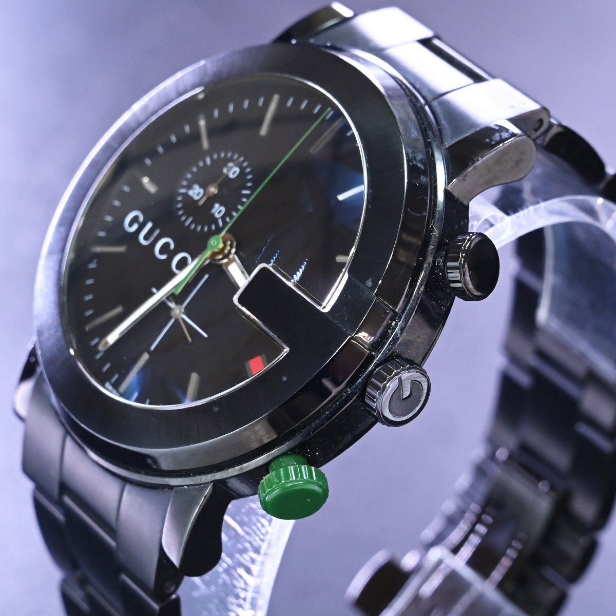 グッチのGクロノグラフ ウェブポイント オールブラックです。 メゾンのアイコンGをケースデザインに落とし込んだアイコニックな逸品。 漆黒のブラックにウェブラインがアクセントになっています。 ※基本動作確認済。 |