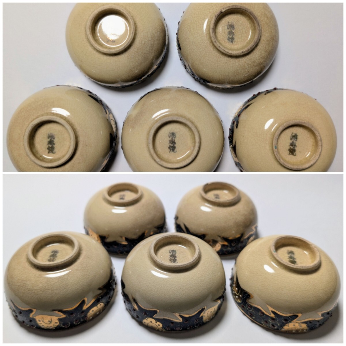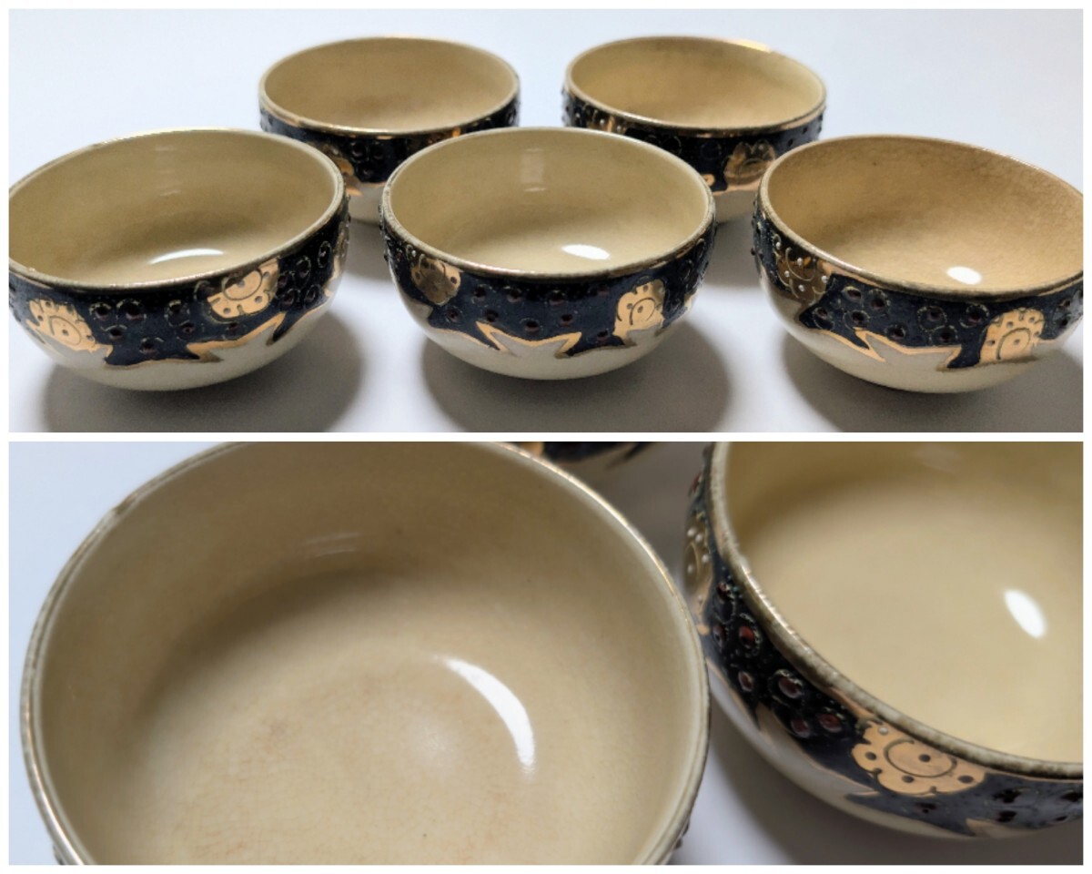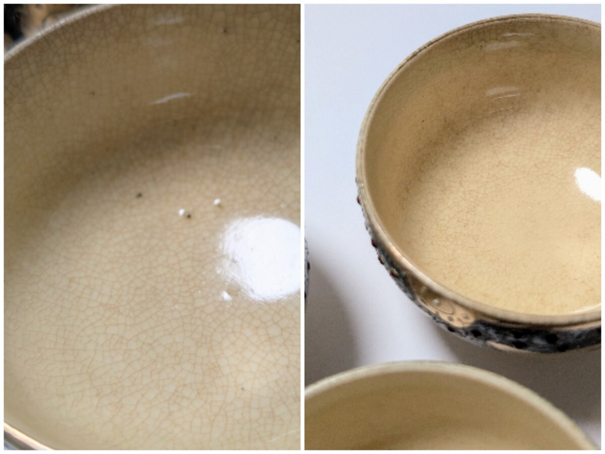 ○全体的にホツやニュウはありませんが、煎茶碗の一客のみ縁に直しがあります。