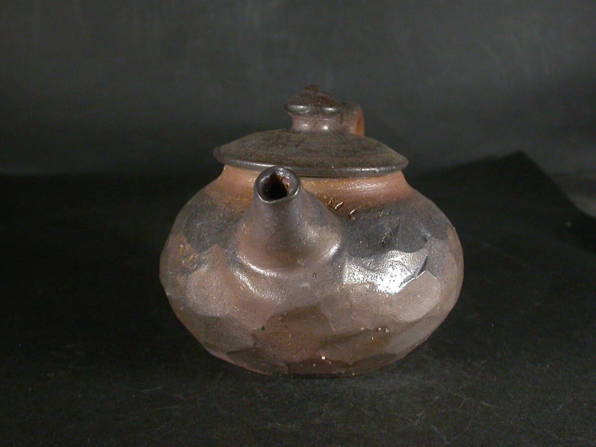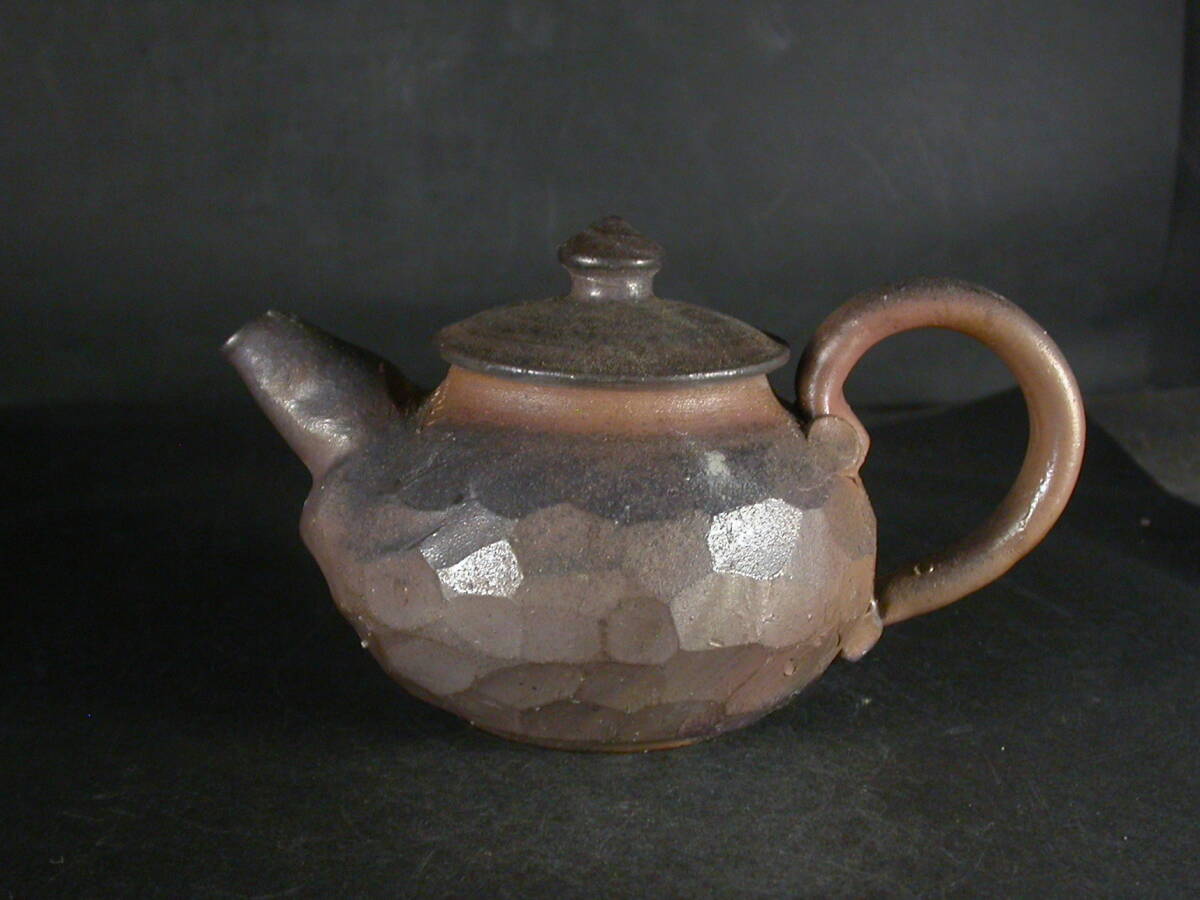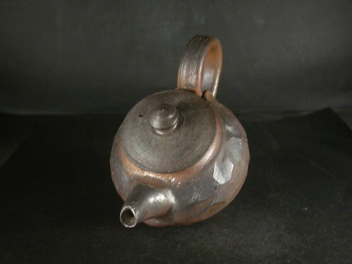 備前焼 登窯 備前焼中堅作家 竹内 靖之(山本) 最新作焦げ茶のゴマ面取り後ろ手急須・ティーポット