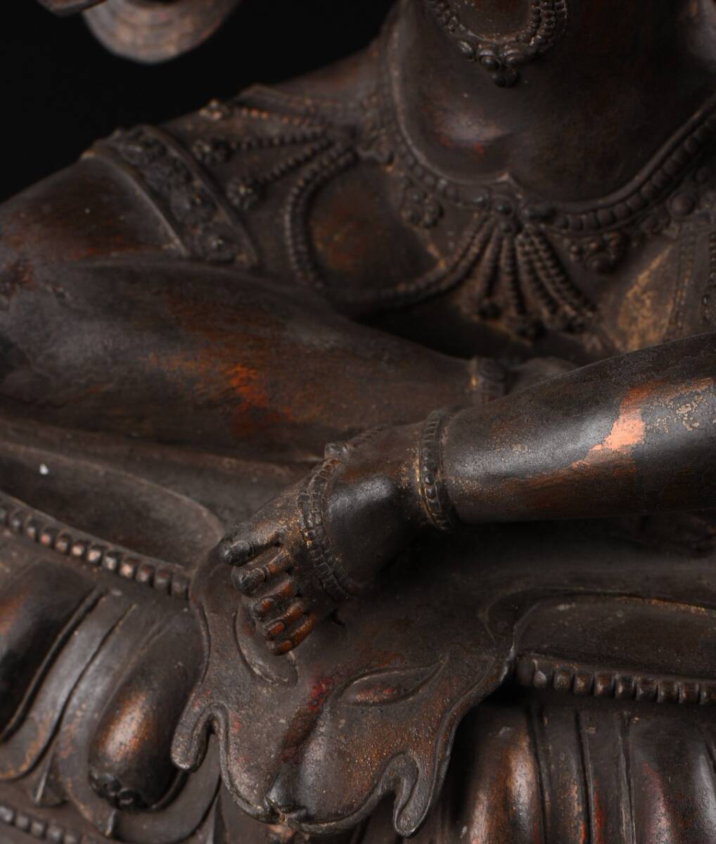 唐物 清 大判銅泥金 自在観音造像 仏像 奉納されていた 供養品 銅製 銅器 極細工 古美術品 中国古玩 骨董品 D611