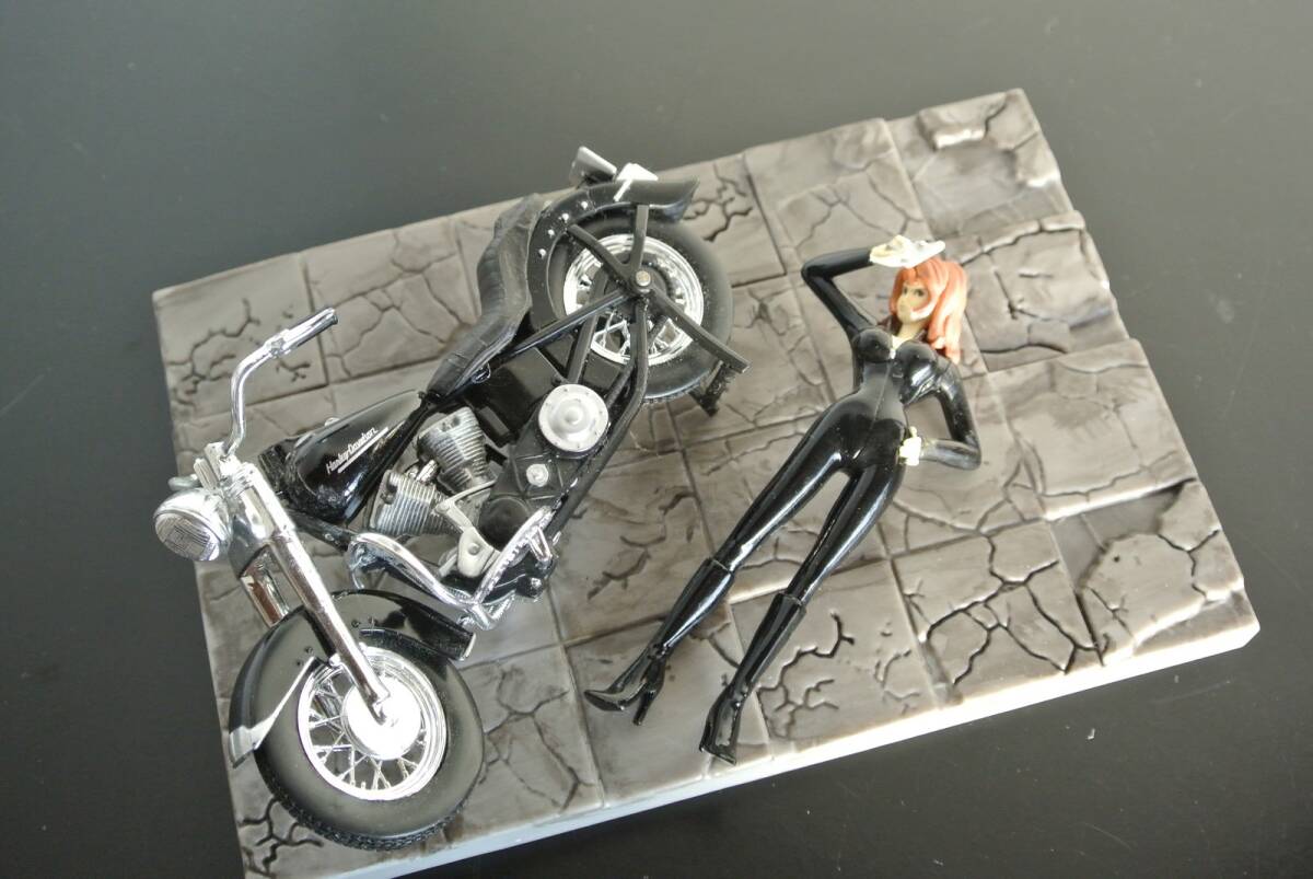 峰不二子(キャットスーツ)フィギュアとバイク模型のセットです。