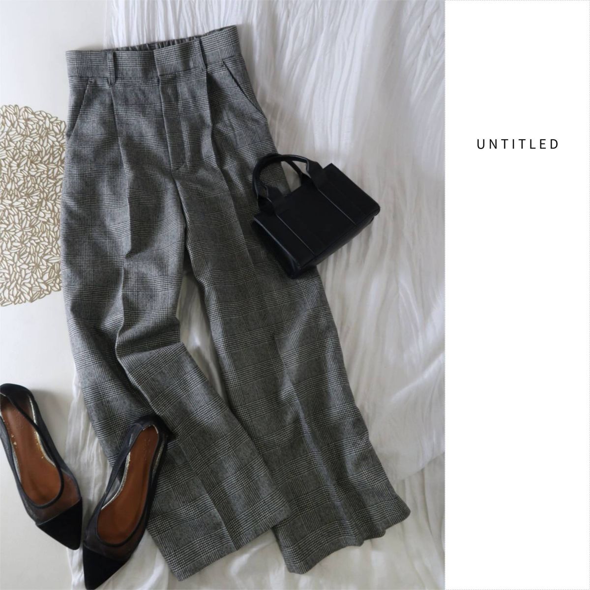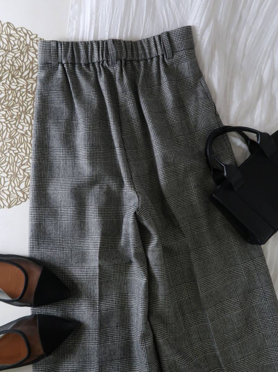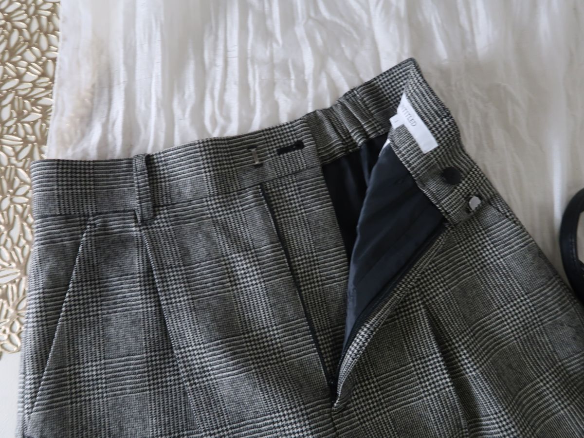 アンタイトル UNTITLED☆洗える チェック柄 ウールタックワイドパンツ 1サイズ 日本製☆R-O 6262