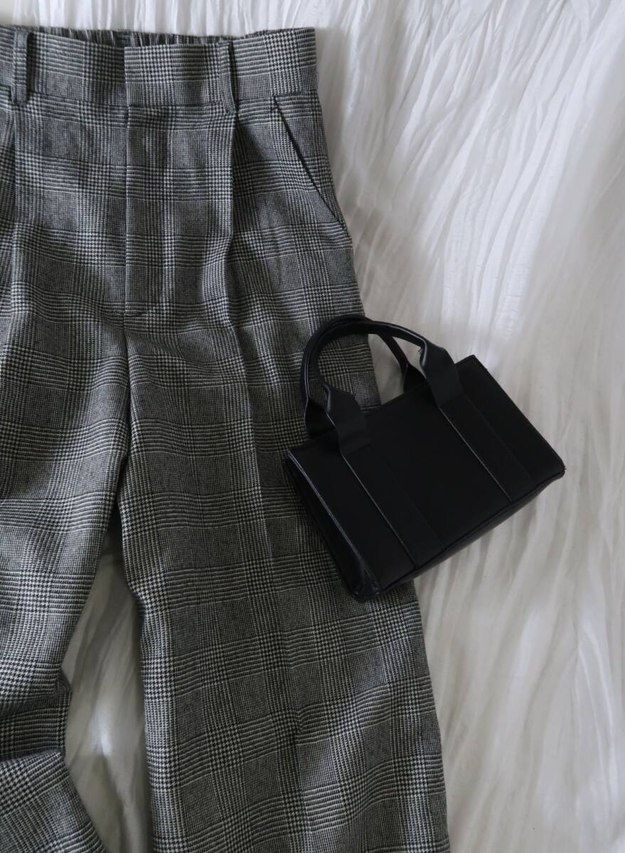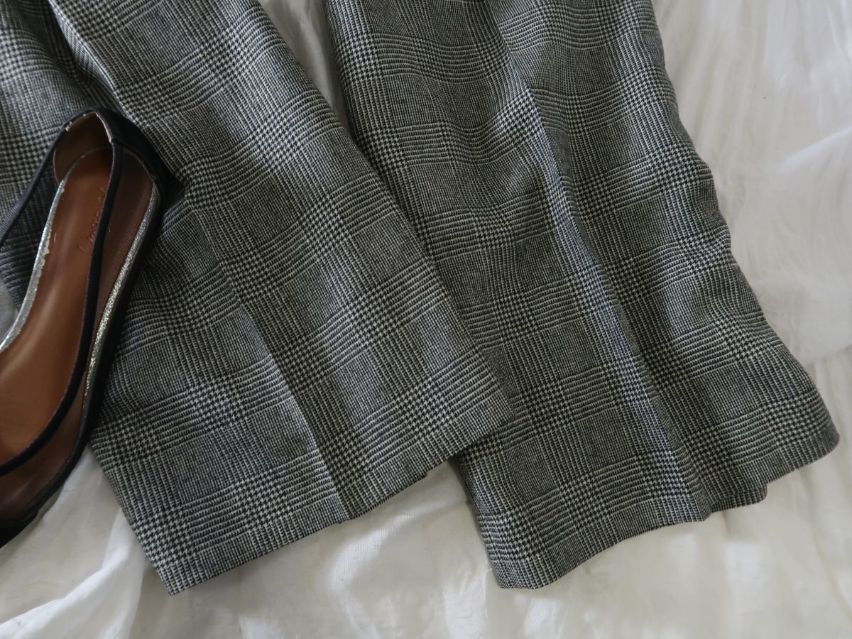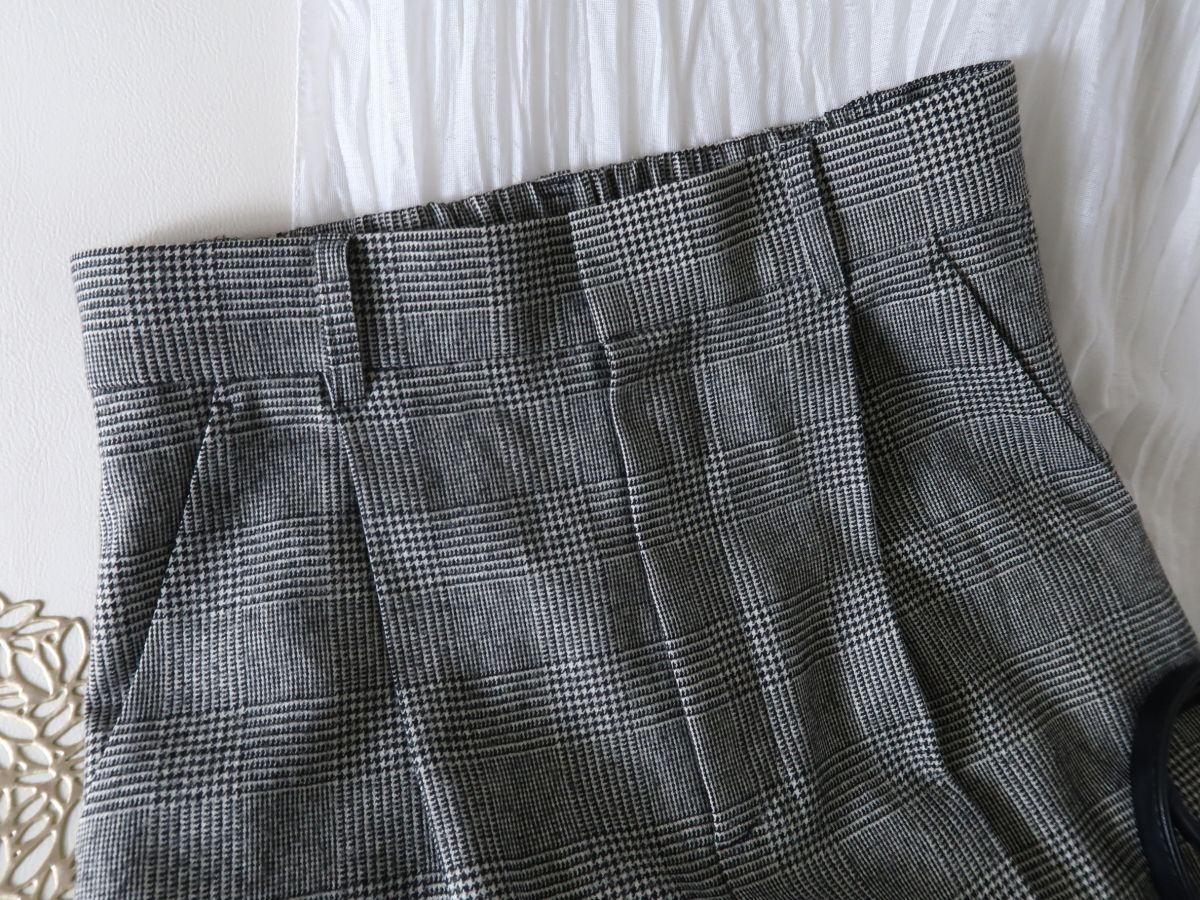 アンタイトル UNTITLED☆洗える チェック柄 ウールタックワイドパンツ 1サイズ 日本製☆R-O 6262