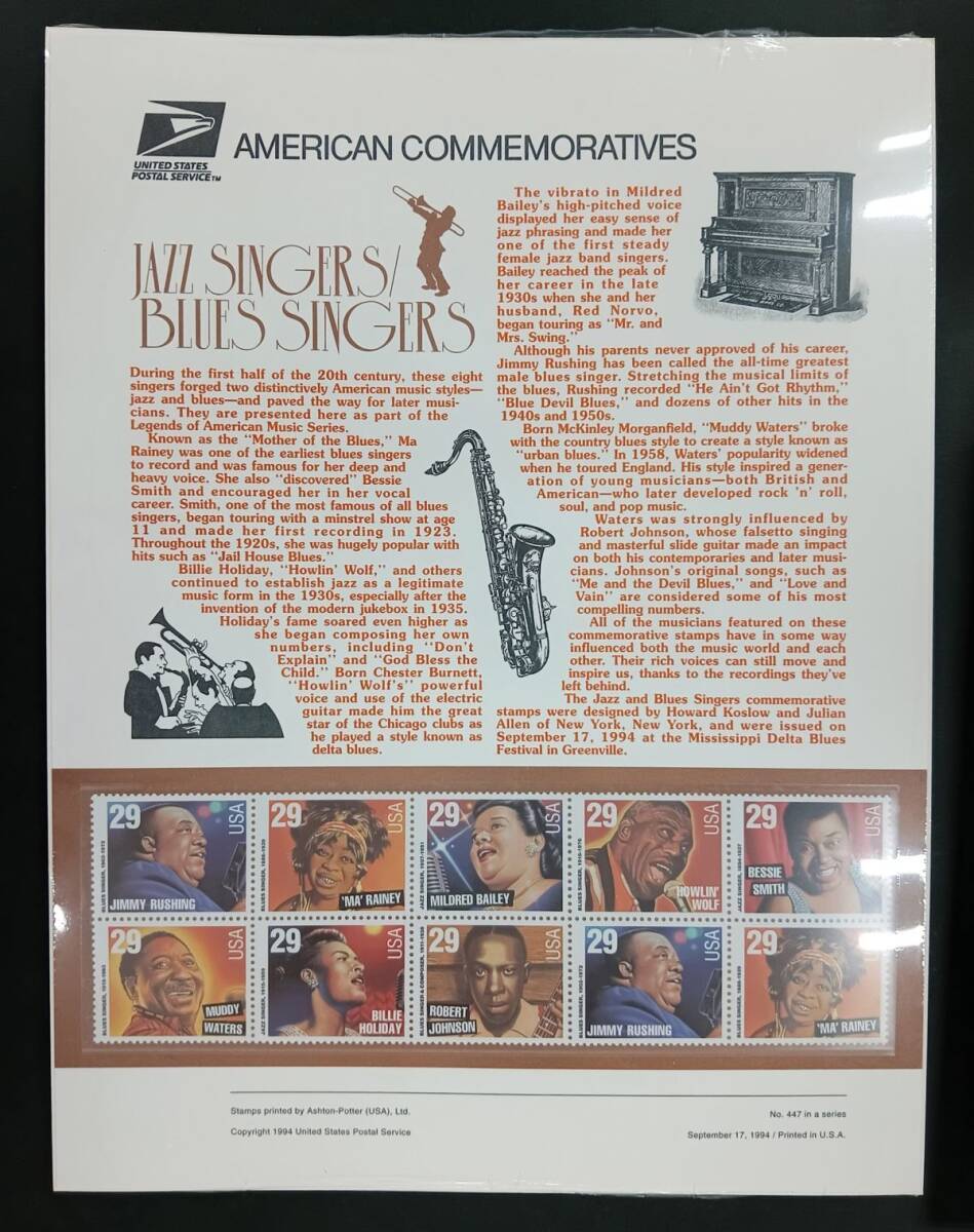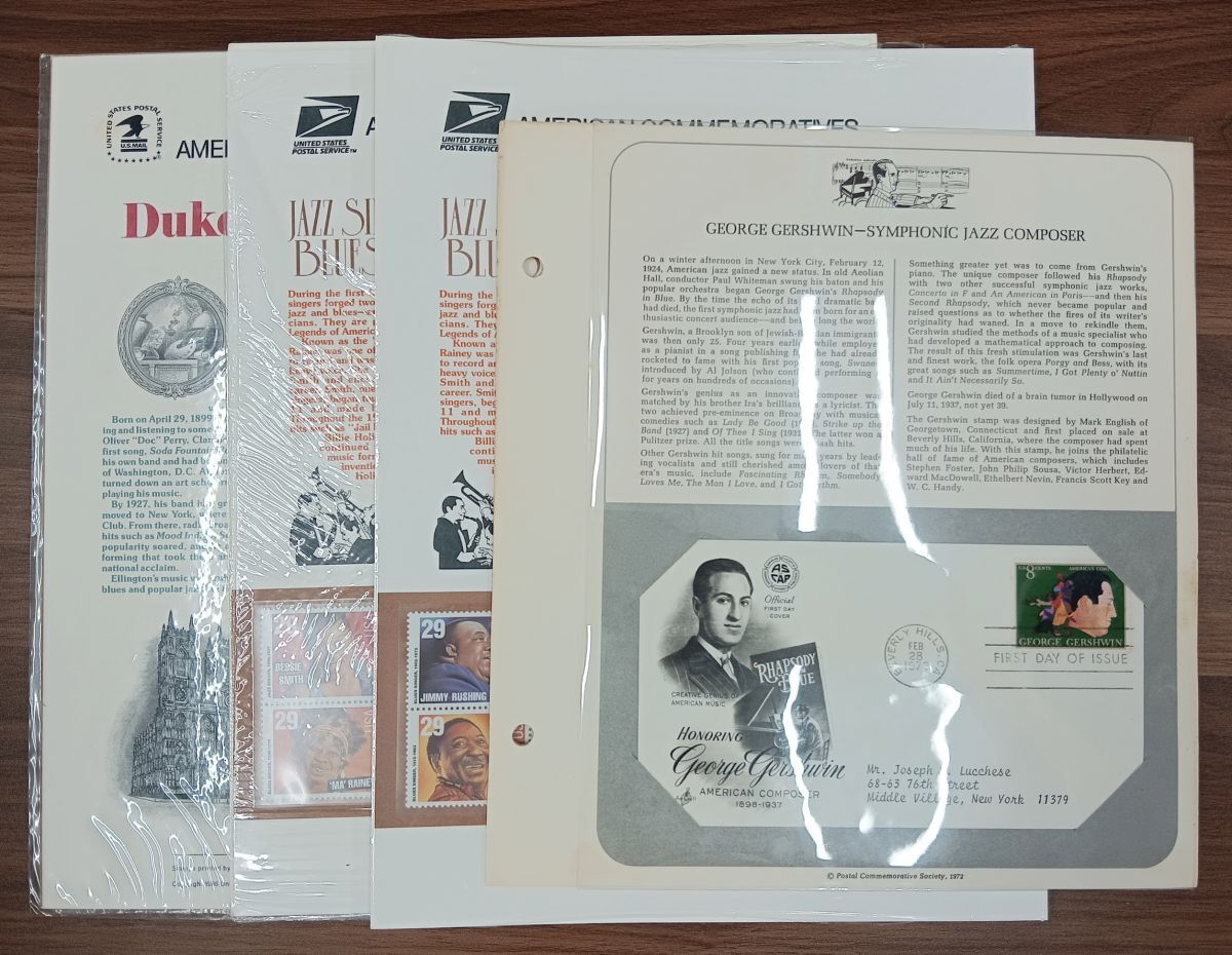 外国切手 アメリカ切手 音楽 (10枚ブロック×2、田型ブロック×1) 未使用、初日カバー(FDC)×1