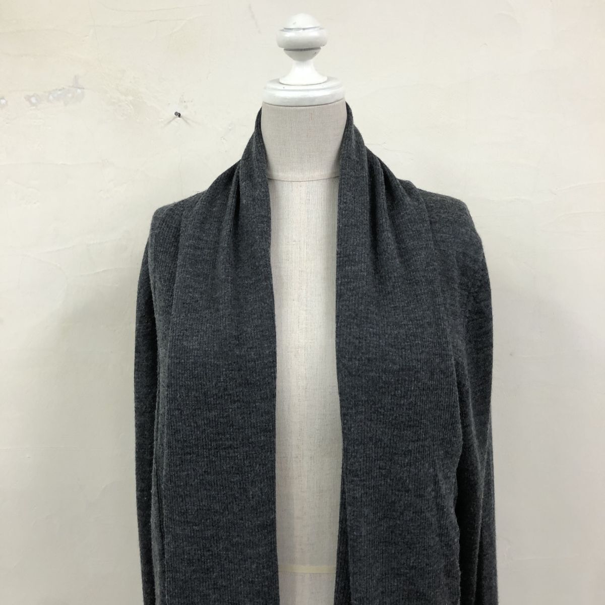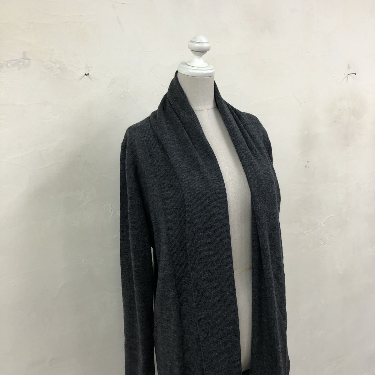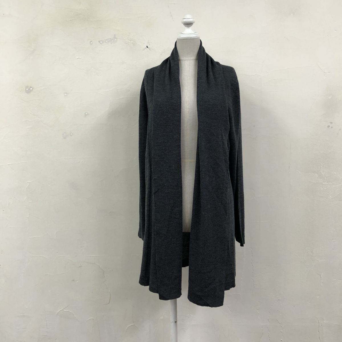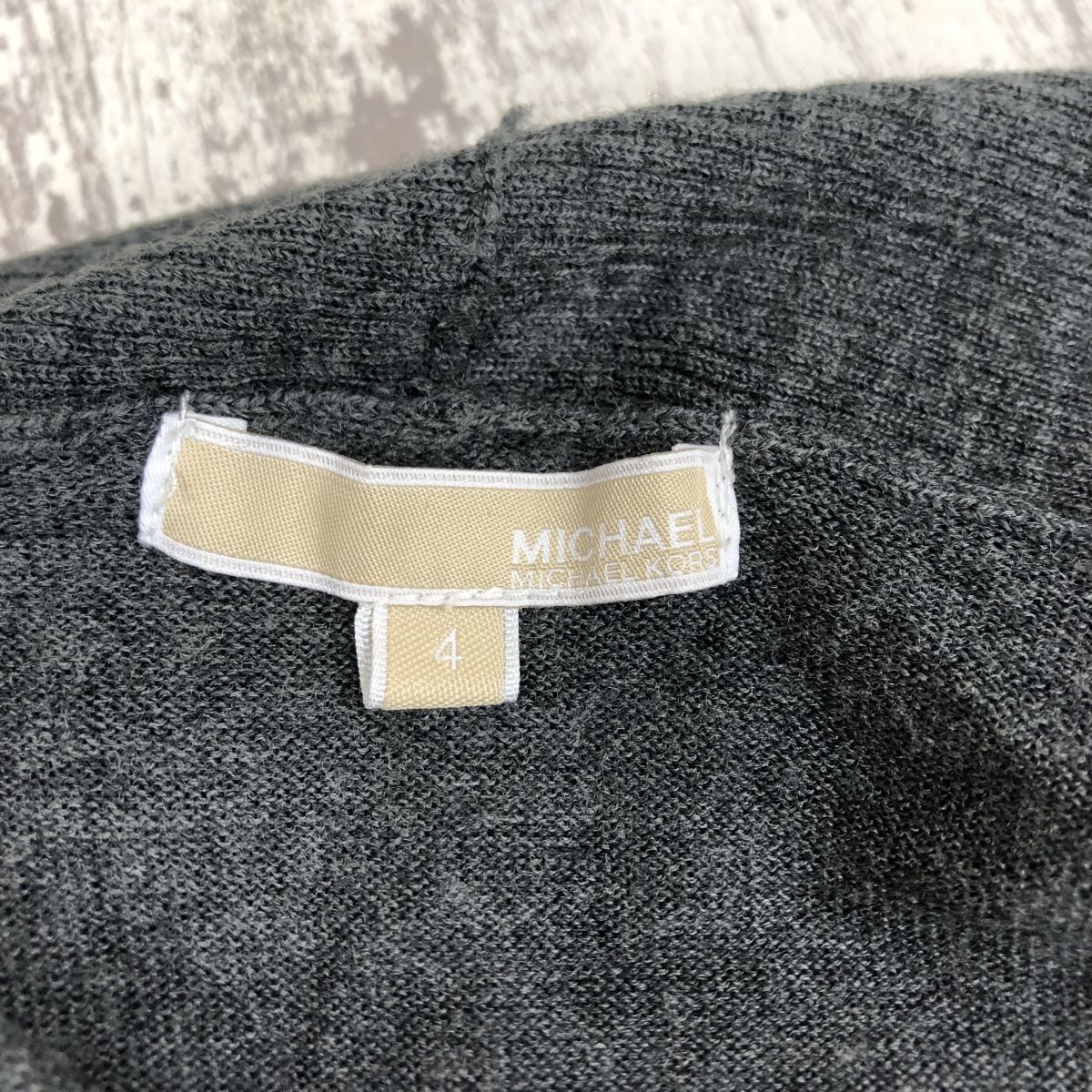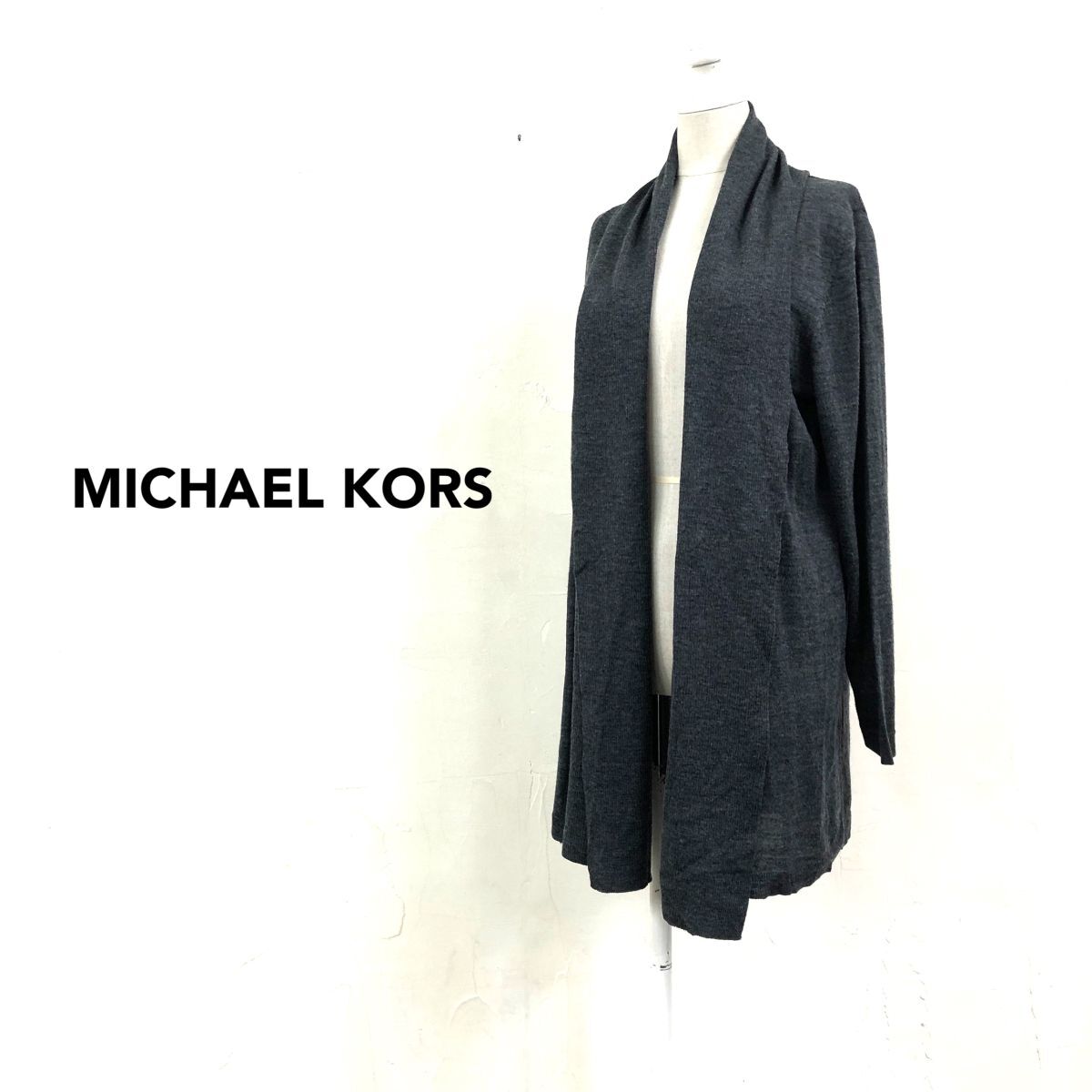 2O3183-G-N◆ MICHAELKORS マイケルコース ハイゲージウールニットガウン ショールカラー 羽織 薄手 無地 ◆ size4 チャコール 毛