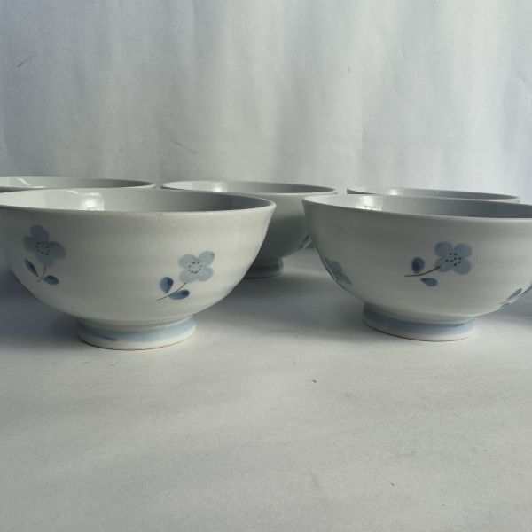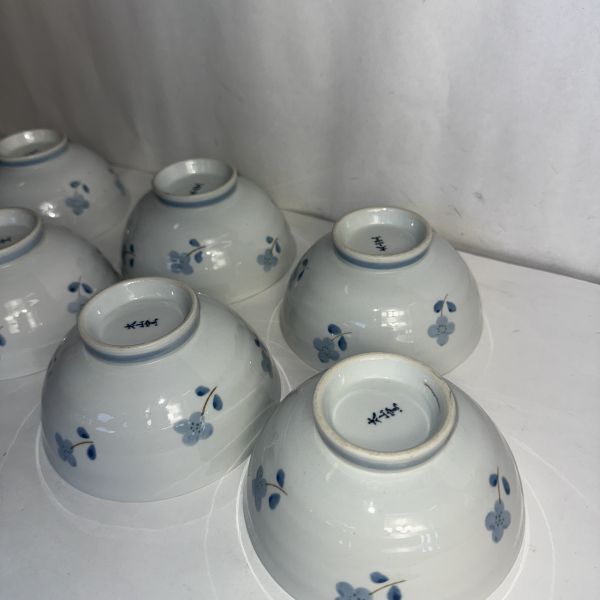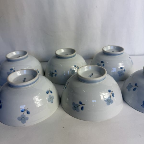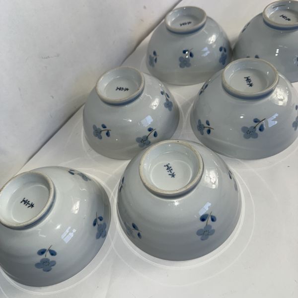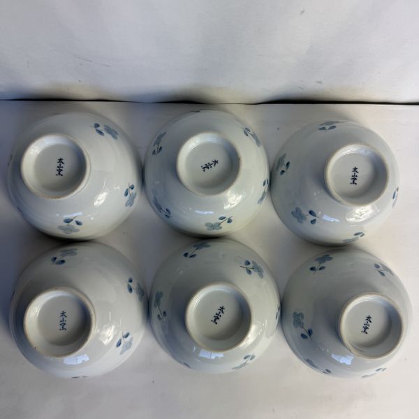 太山窯 お茶碗 6個セット 花柄 青絵 飯碗 ご飯 陶器 和食器 インテリア キッチン 料理 食卓 長期保管品 K2f R71103