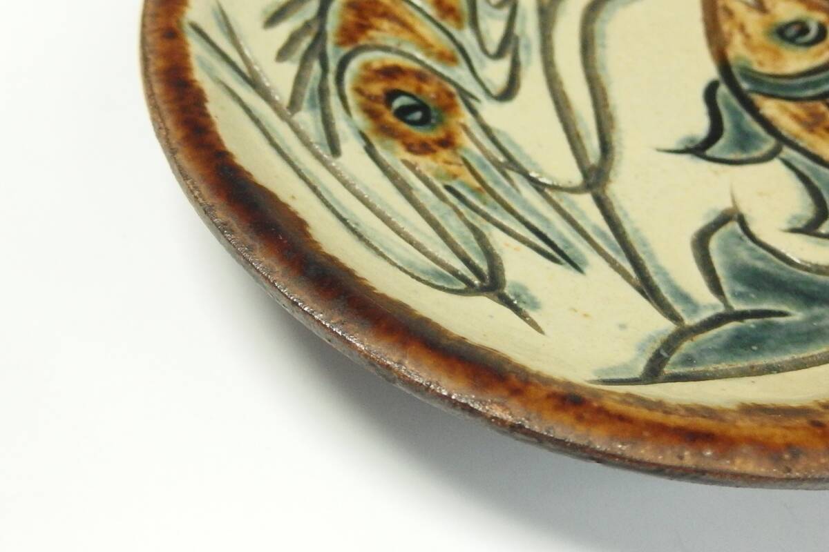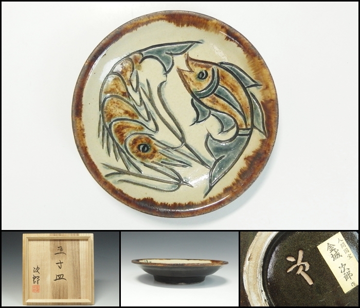 ●ご覧頂きまして誠にありがとうございます。 今回の出品は【251103-8】人間国宝 金城次郎 造 壺屋焼魚海老紋五寸皿 「次」銘有り 栞・共箱付 沖縄陶磁器です。 時代なりの汚れや貫入・ジカン、若干底部表面に傷などはありますので画像にてご確認下さい。 この機会に是非お手元にお納め下さい。 【サイズ】 高さ:約3.0cm、直径:約15.3cm ※手計測ですので若干の誤差はございます。 予めご理解をいただいた上でご入札ください。 |