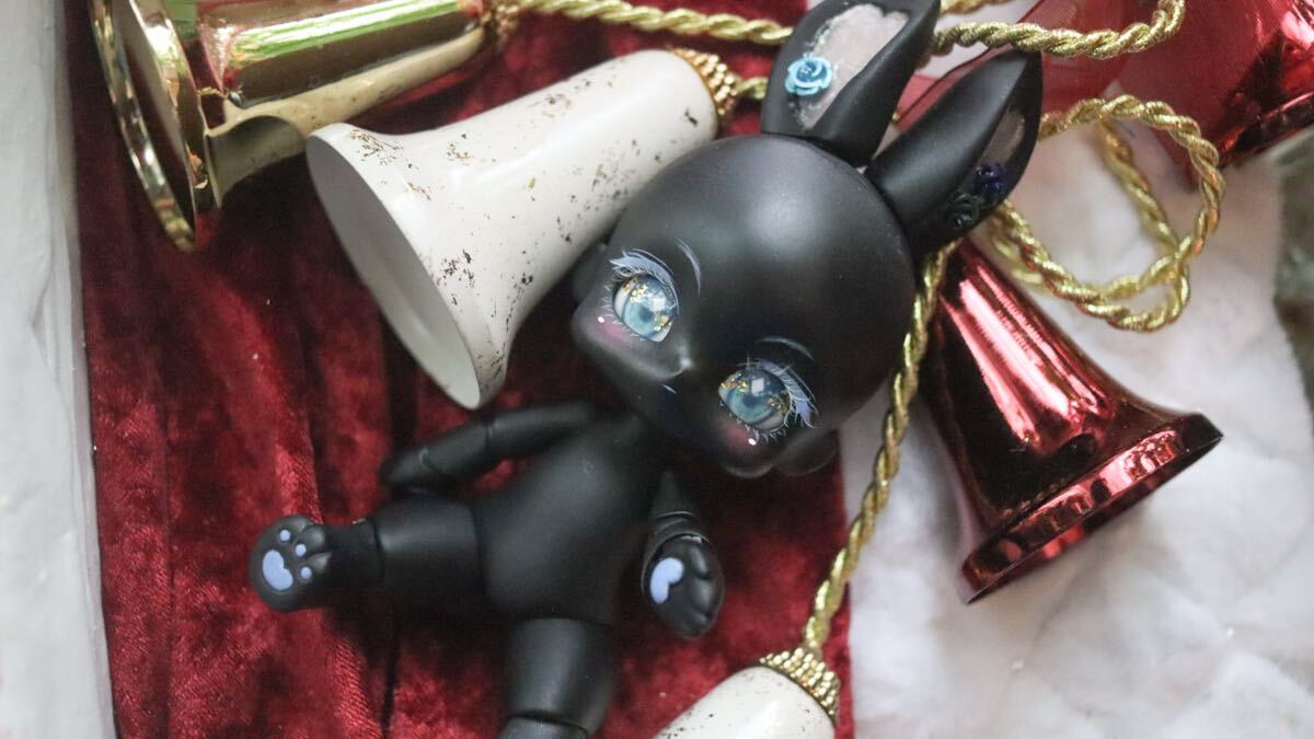 今度のベスティは亡き愛猫ノルウェージャンフォレストキャットの小牧にくっついて歩いていた、亡き愛兎ミニウサギのこーたをモチーフにした掌サイズのドールです。