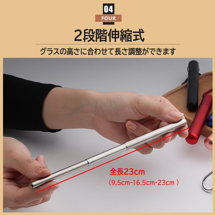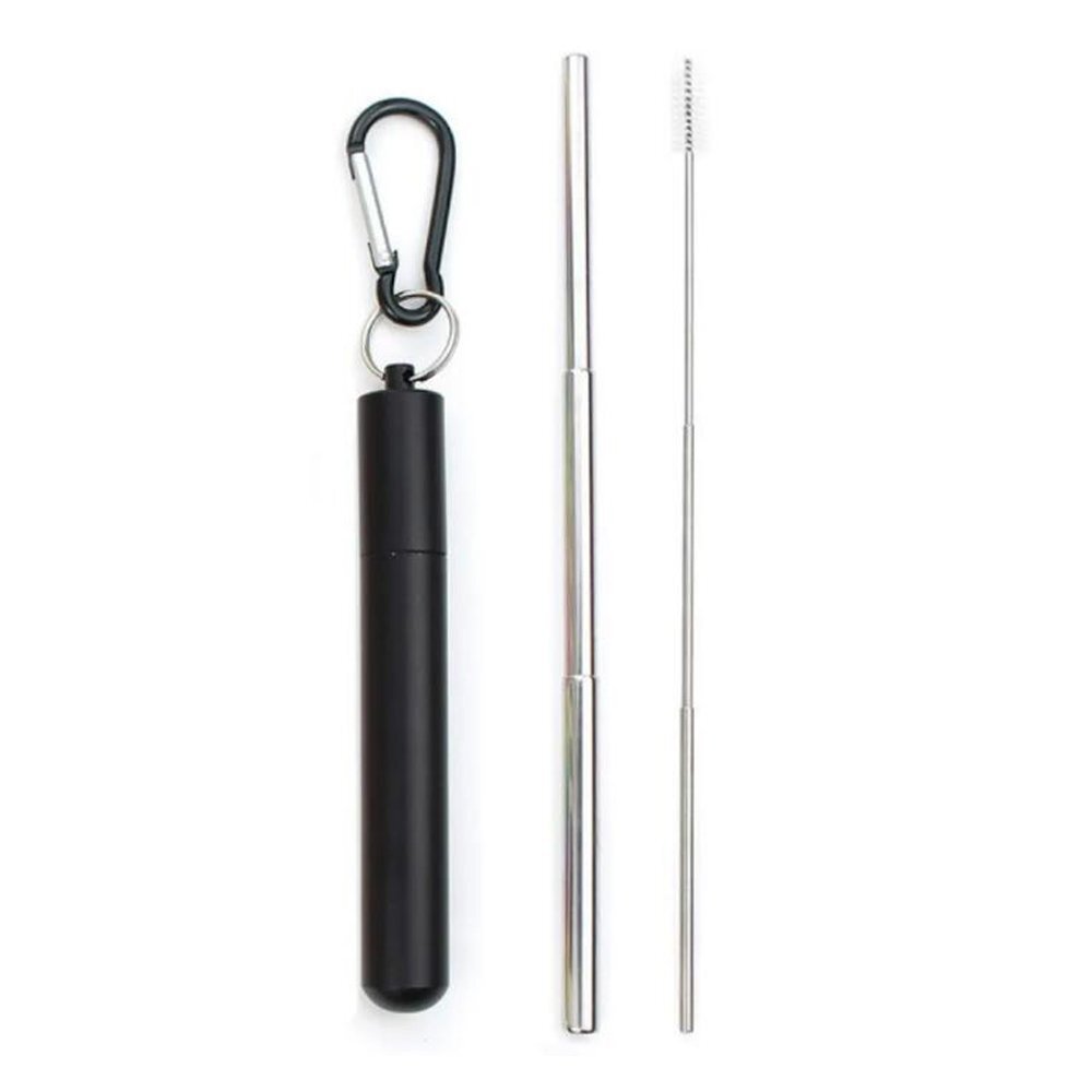 ◆携帯ストロー ポケットストロー マイストロー 高級感 伸縮式 折り畳み コンパクト 洗浄ブラシ付き 繰り返し使える エコ サステナブル SDGs カラビナ付き 携帯便利【ブラック】FLST304