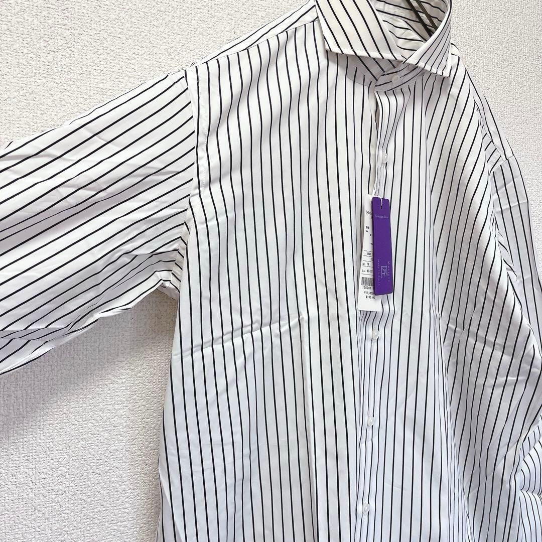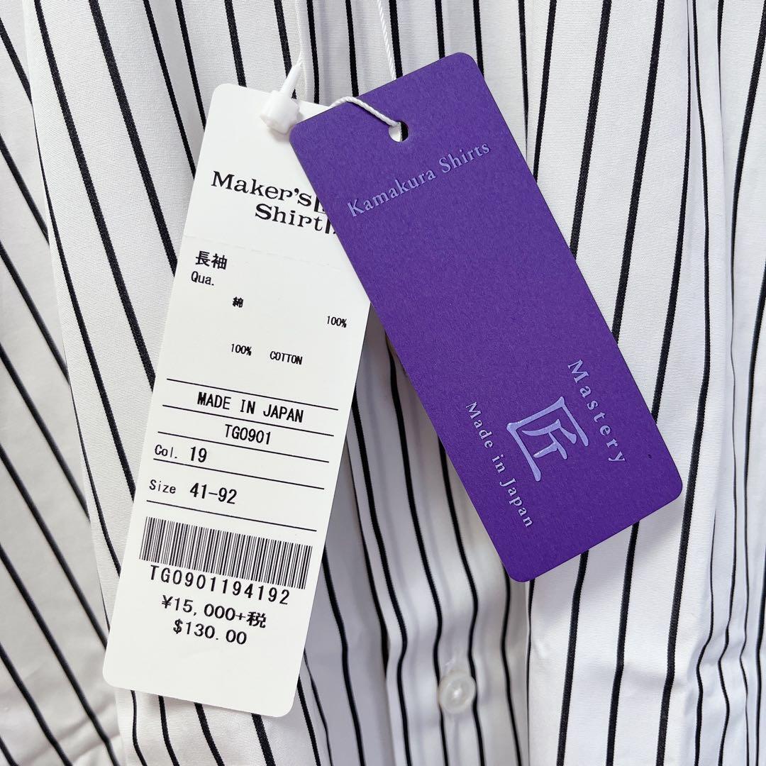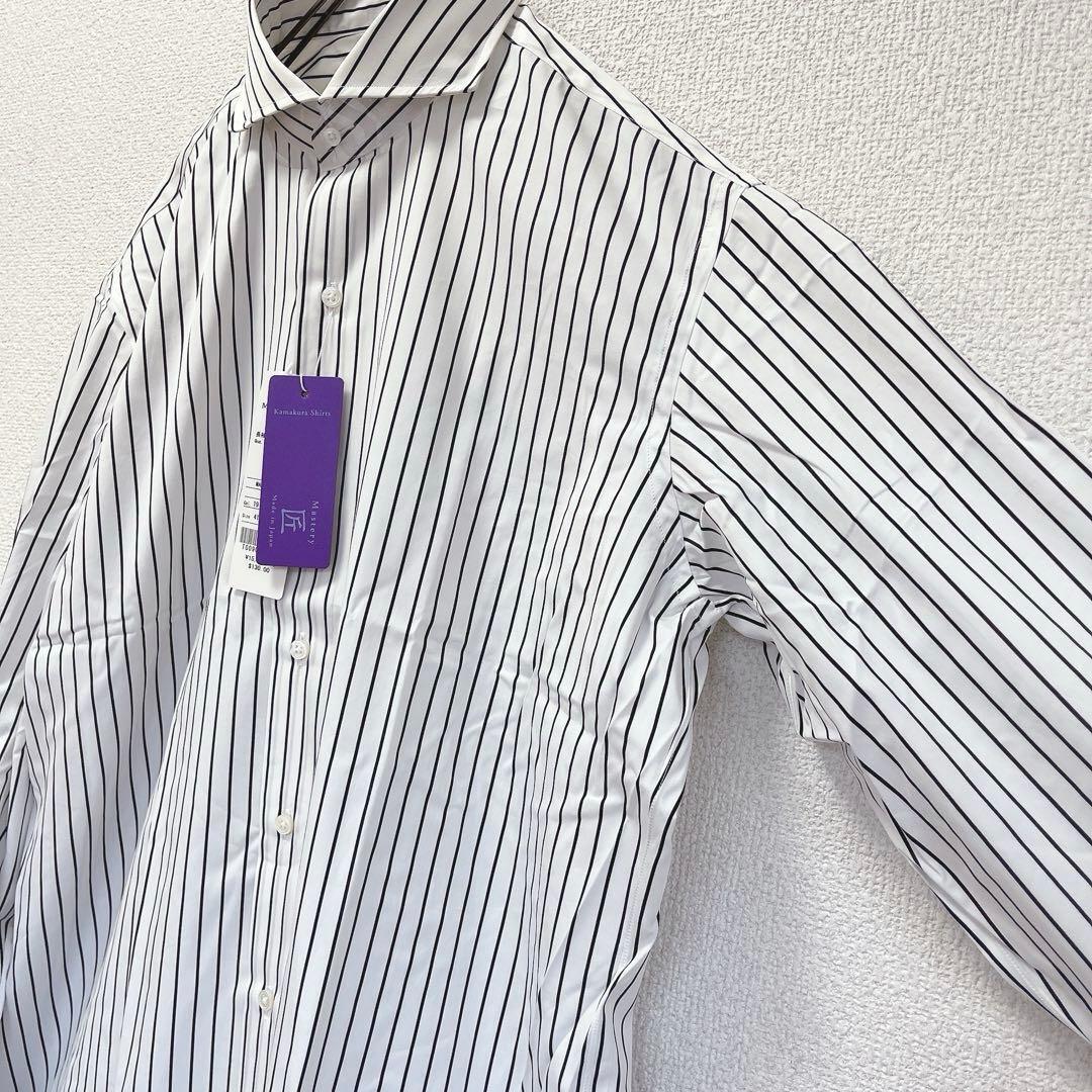 ★新品★鎌倉シャツ 長袖シャツ ストライプ 匠 イタリア生地 日本製 白黒 XL