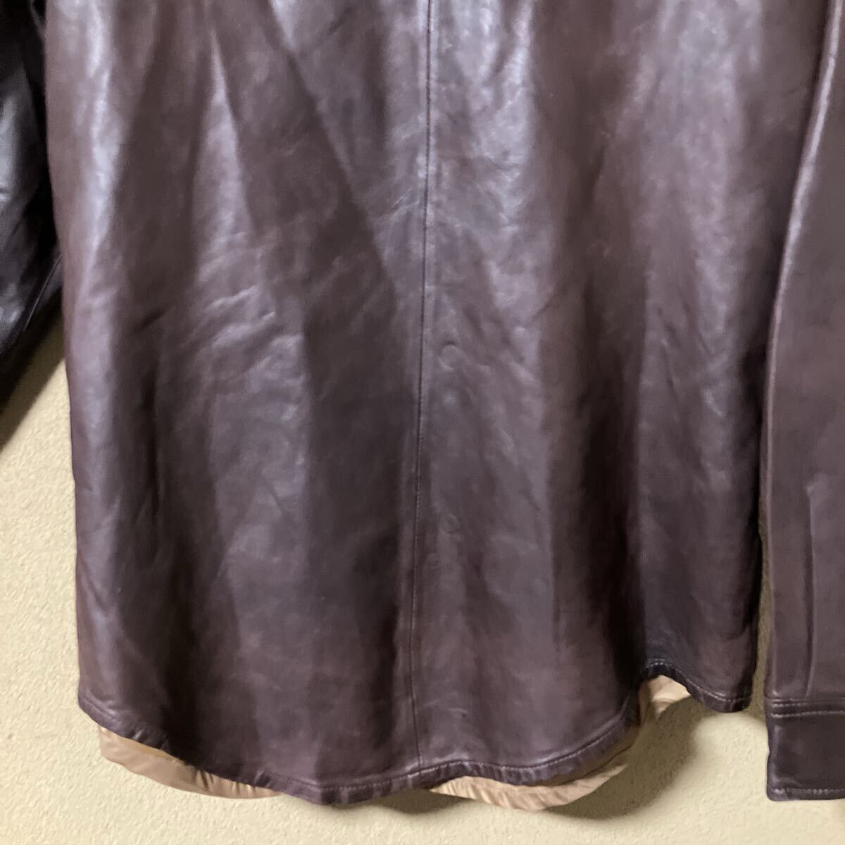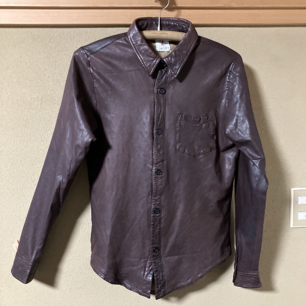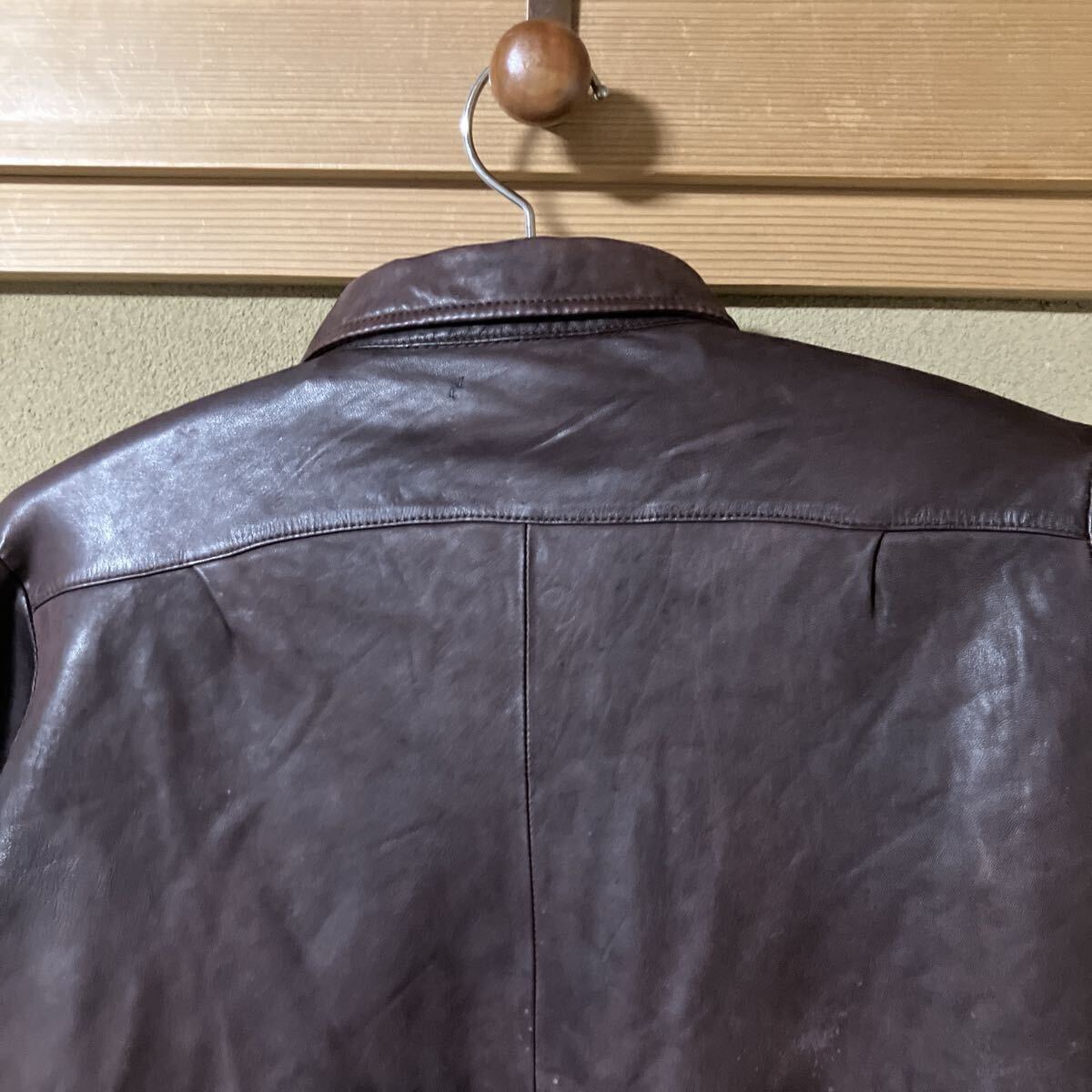 昔からのナメシの方法で手間暇を掛けたベジタブルダイでなめされた羊革で作成されたシャツ。ラベルと色のブラウンからコチラのレザーシャツジャケットの初期モデルだと思います。途中からブラウン系はダークブラウンに変更されたと思います。