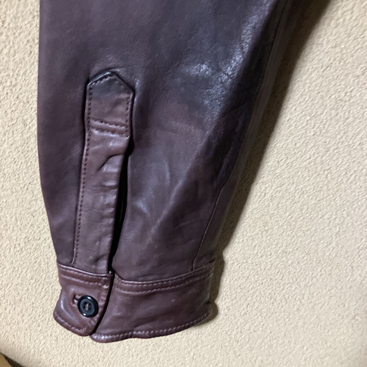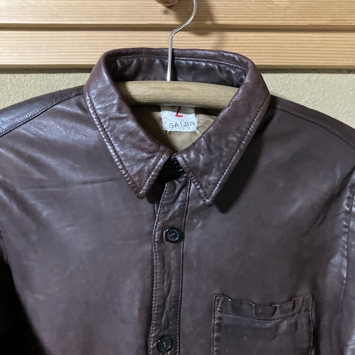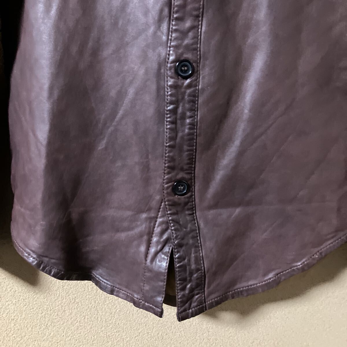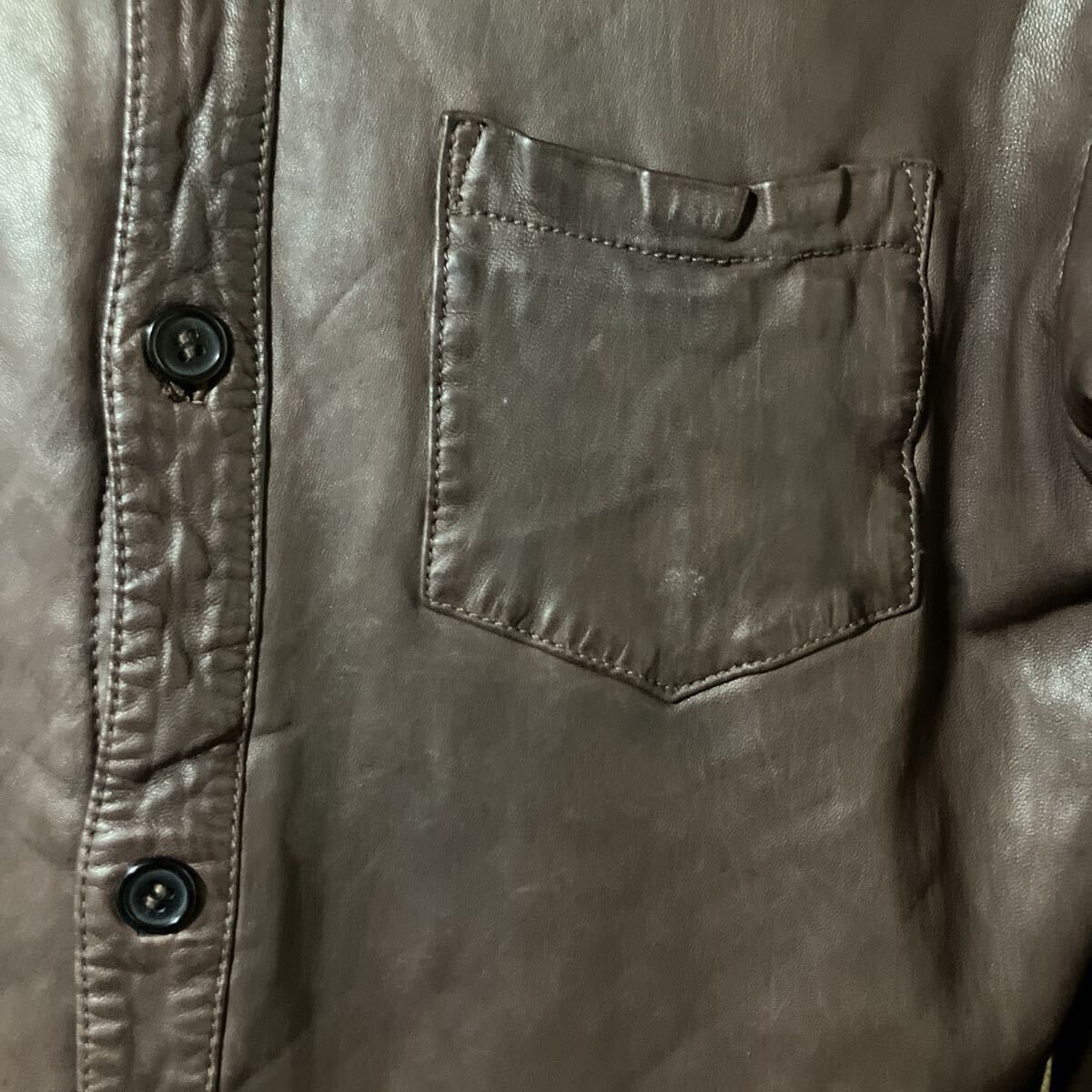 昔からのナメシの方法で手間暇を掛けたベジタブルダイでなめされた羊革で作成されたシャツ。ラベルと色のブラウンからコチラのレザーシャツジャケットの初期モデルだと思います。途中からブラウン系はダークブラウンに変更されたと思います。