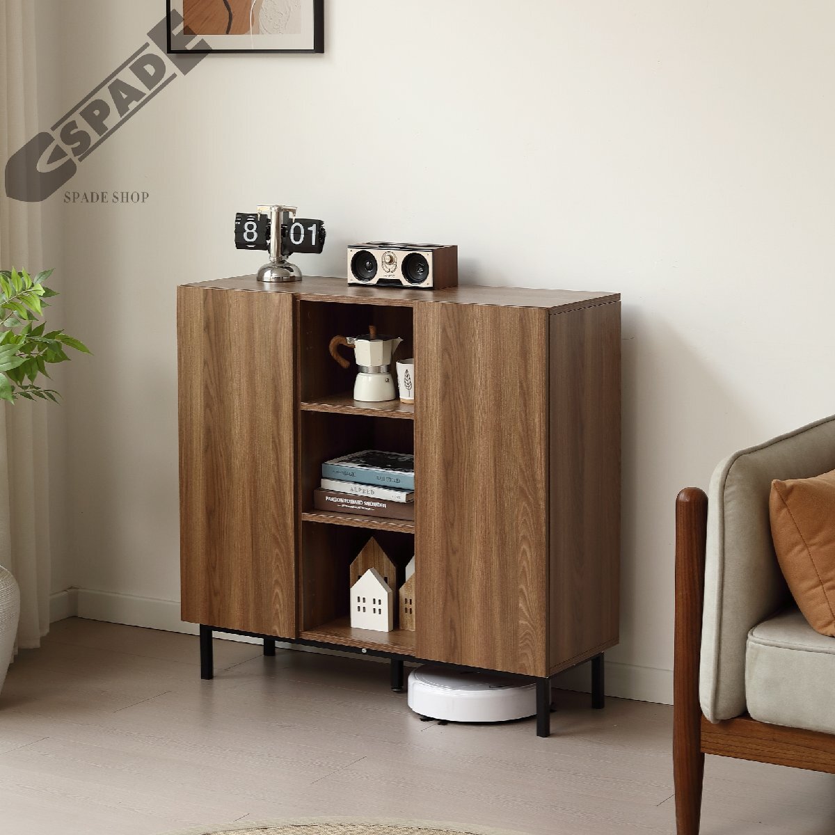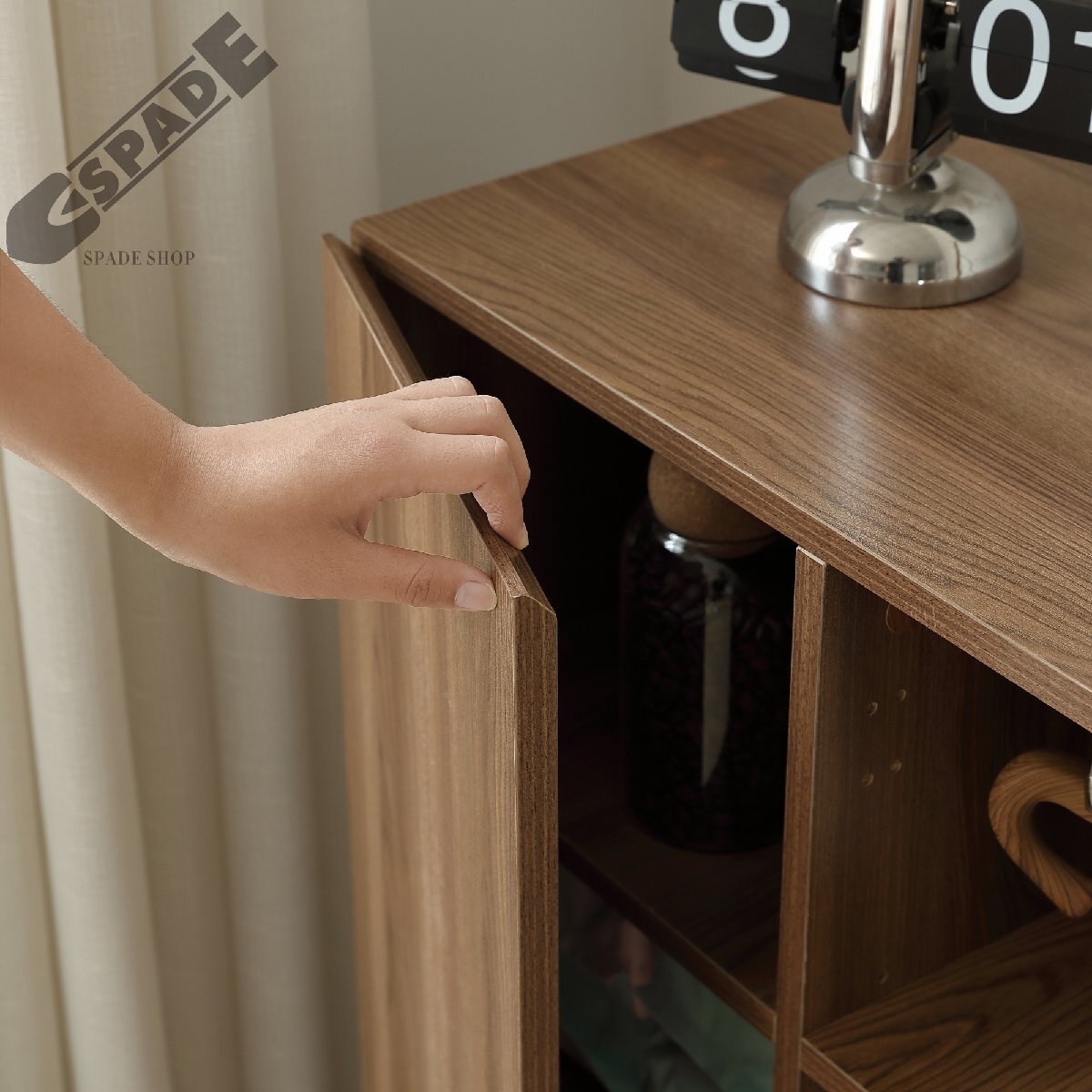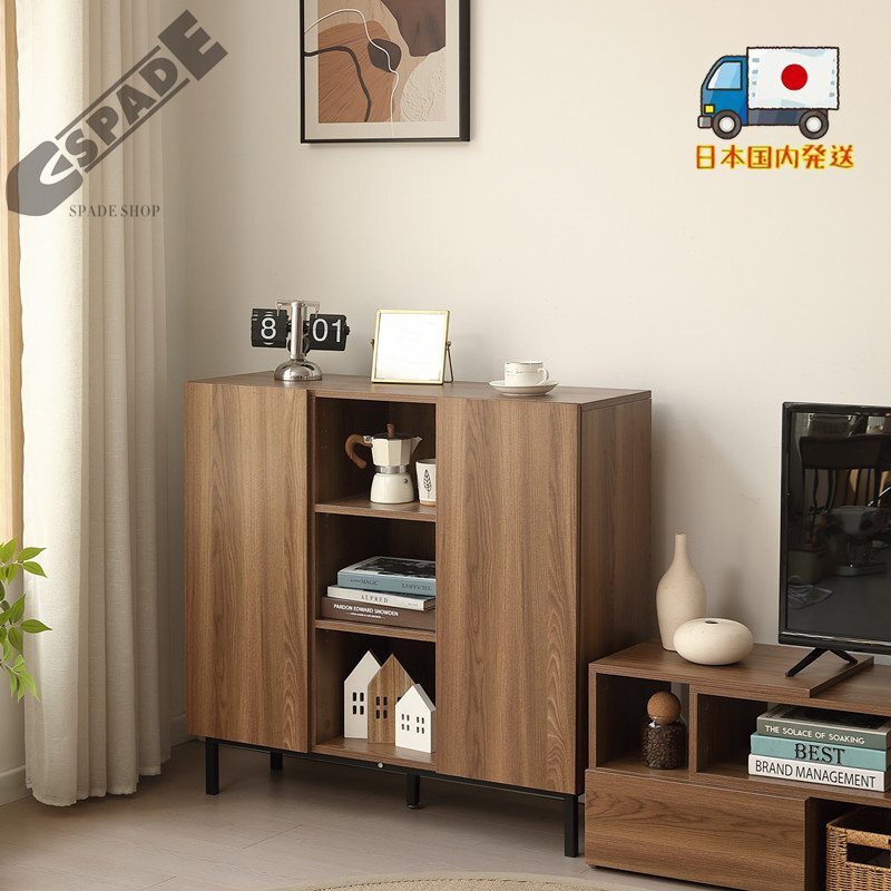 【国内発送】キャビネット扉付きサイドボード 収納棚 おしゃれ リビング モダン棚 木目調 チェスト 書類 コード穴 韓国インテリアちゃいろ