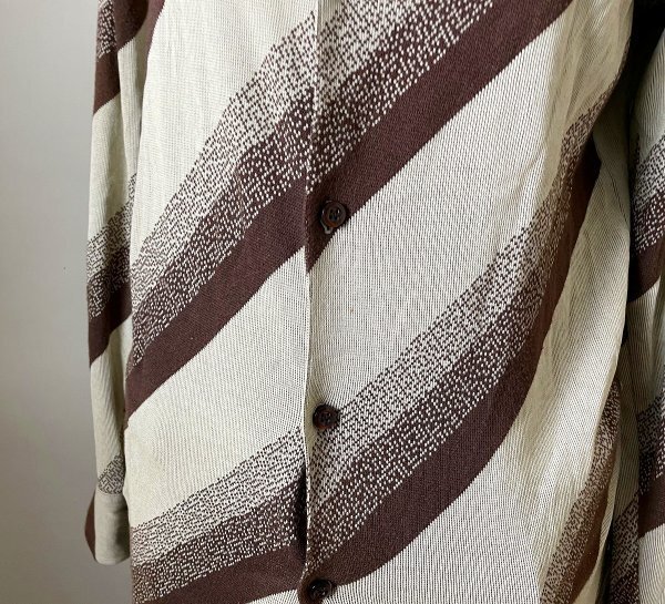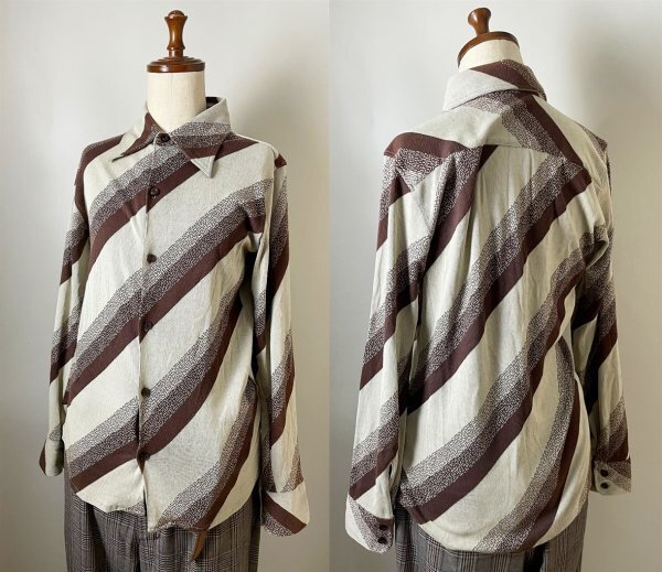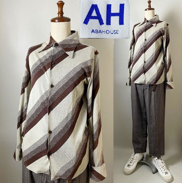 ★【国内正規品 激レア 日本製】90s ビンテージ ABAHOUSE アバハウス コットン ナイロン ストレッチ 総柄 シャツ S相当 タイト目 ブラウン