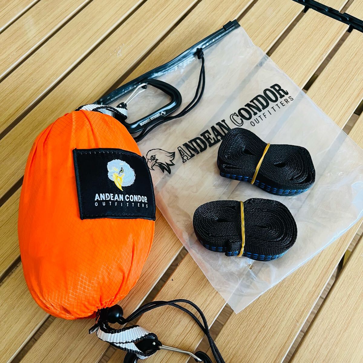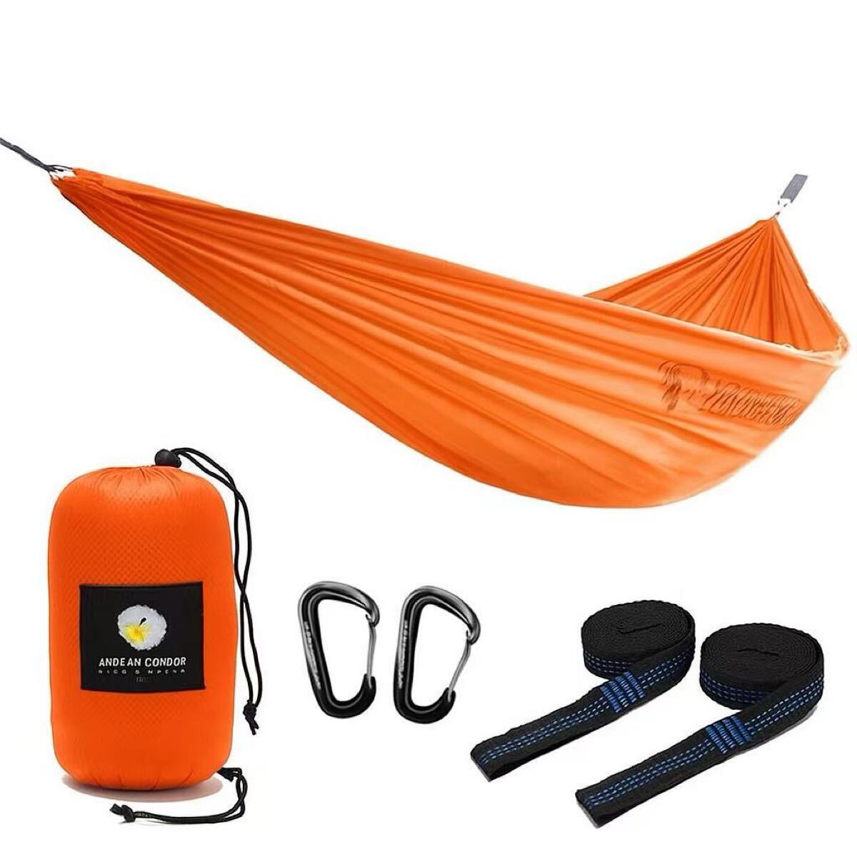 ハンモック 210Tナイロンタフタ製 リップストップ ダイヤモンドパターン生地 12kNアルミ製セーフティカラビナ キャンプ 300*150CM 495g