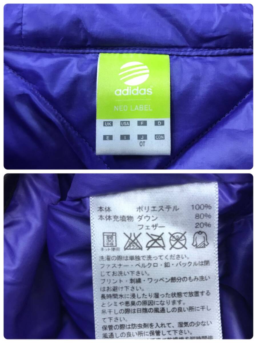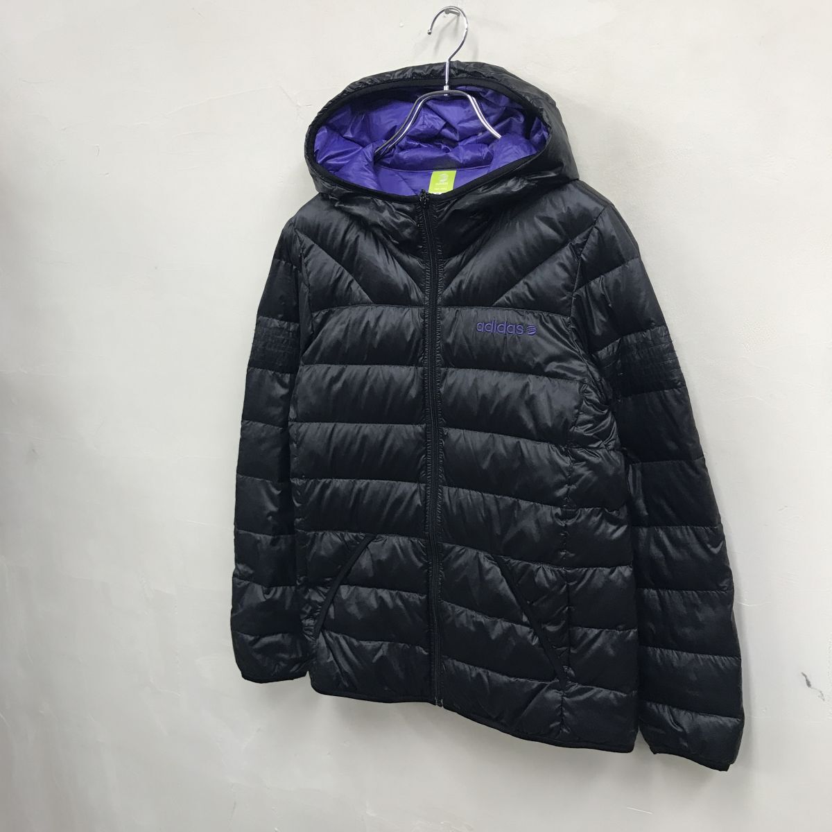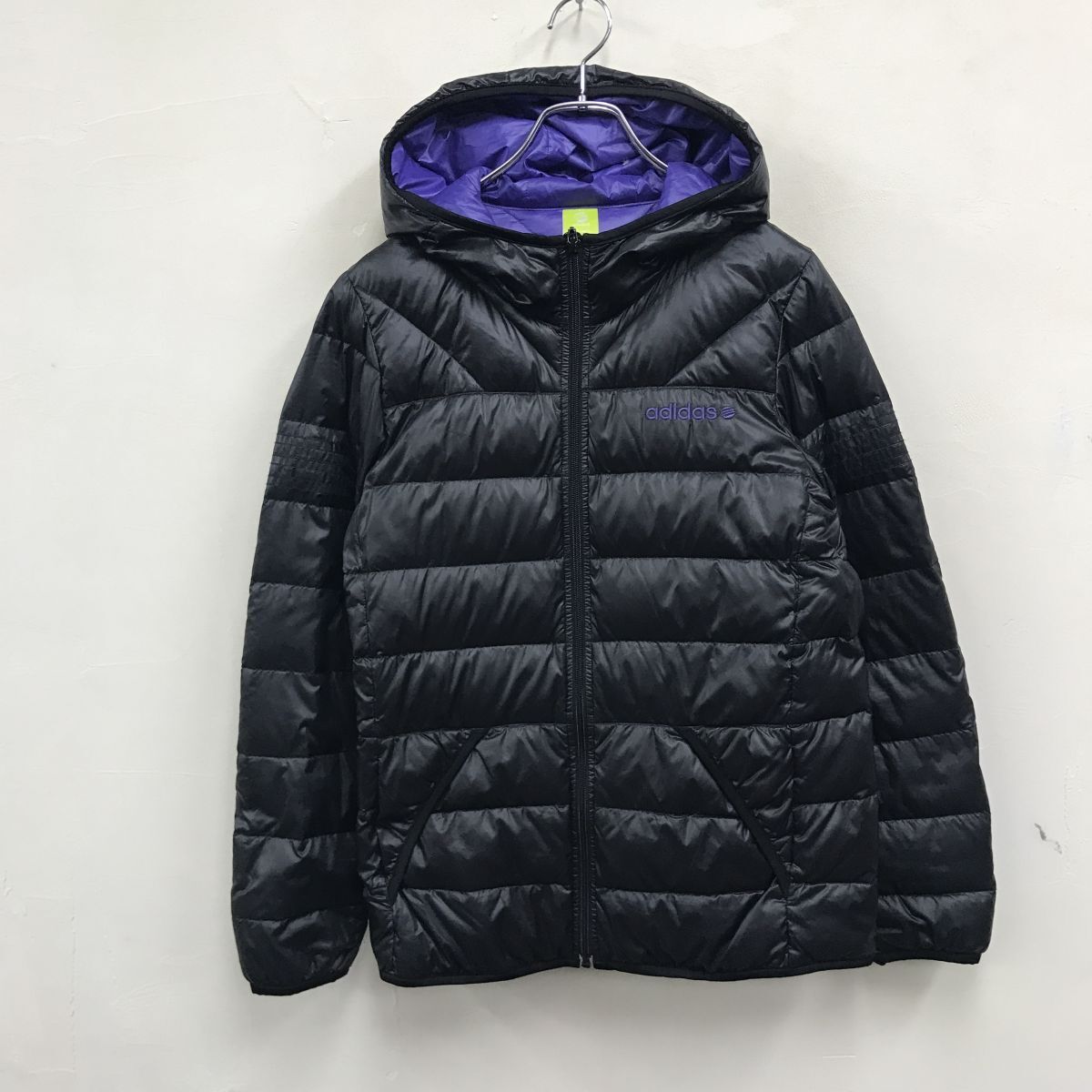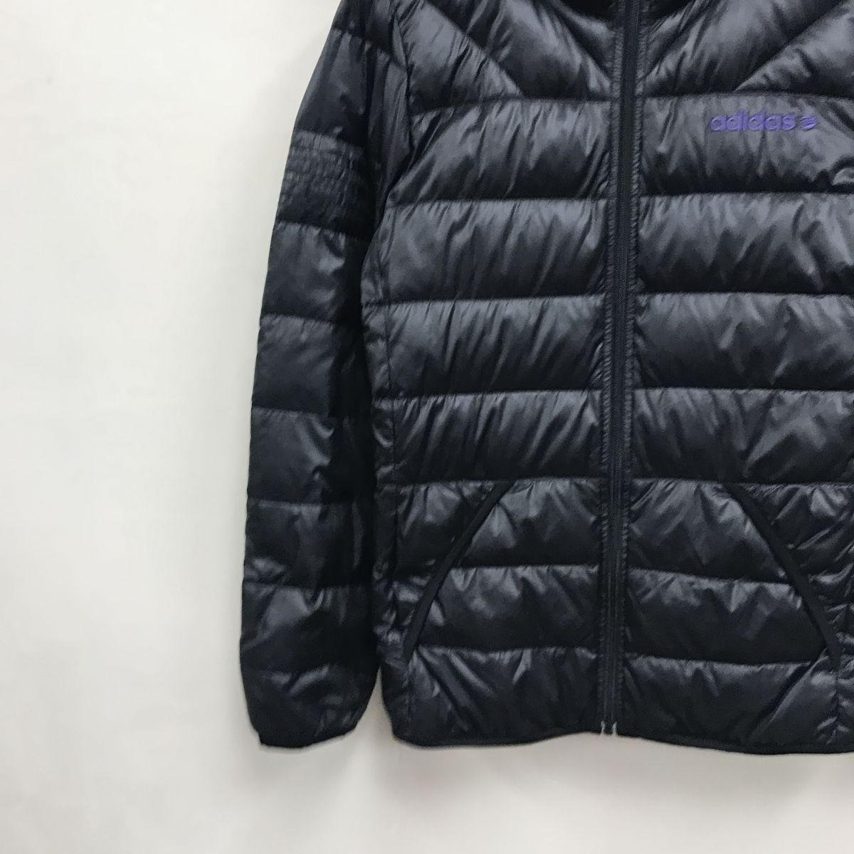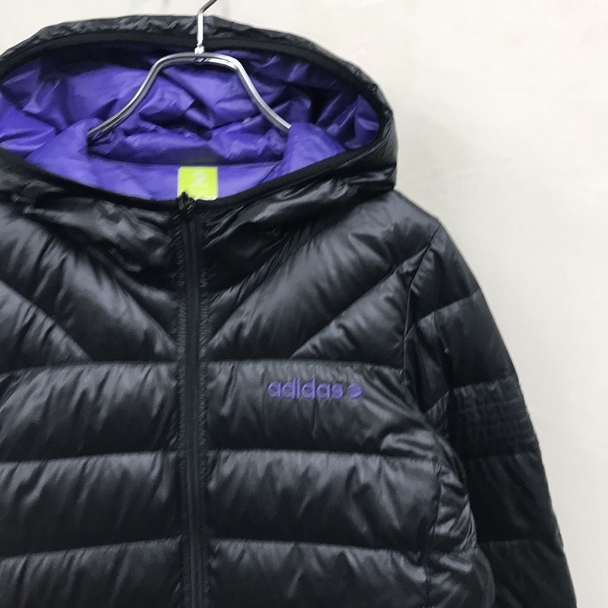 2N1042-G-N◆ adidas アディダス ジップアップダウンジャケット フーディ 微光沢 シンプル ショート丈 ◆ sizeXL 黒 紫 ポリエステル