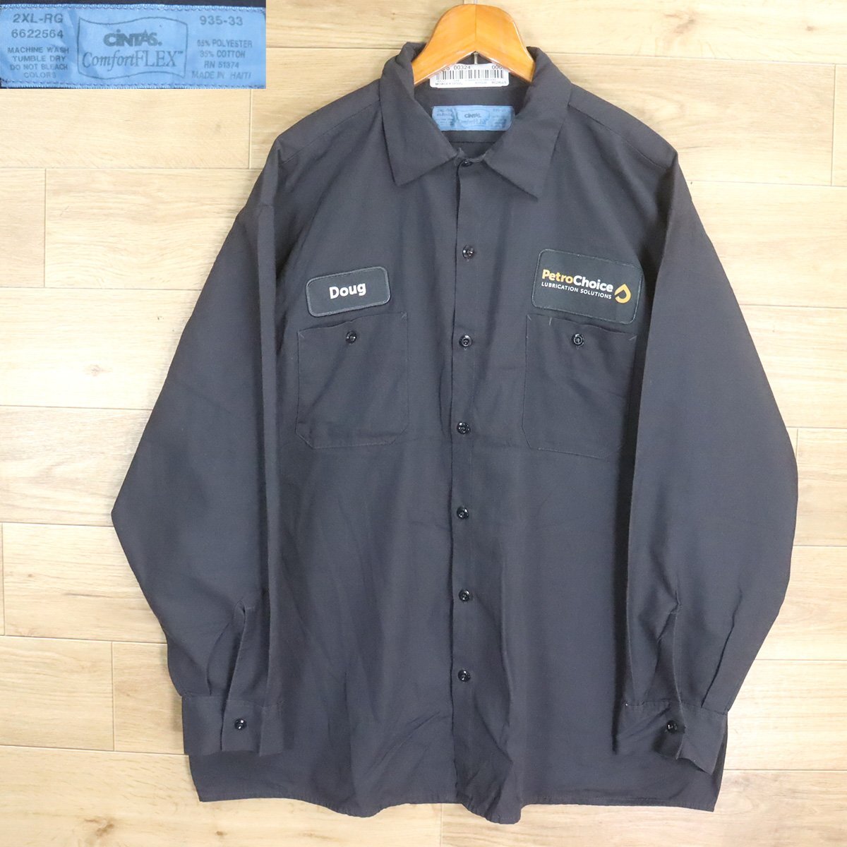 W3T/D10.30-1 アメリカ古着 Cintas シンタス ワークシャツ XXL 2XL ワッペン チェーンステッチ バック刺繍 文字 KENMORE EAST