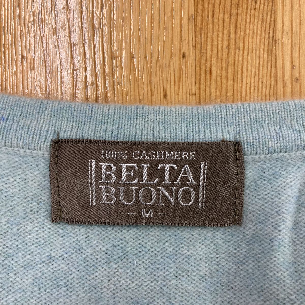 2O3045-W◆BELTA BUONO ベルタボーノ カシミヤニット カーディガン ボタン Vネック シンプル◆size:M ミントブルー系 カシミヤ
