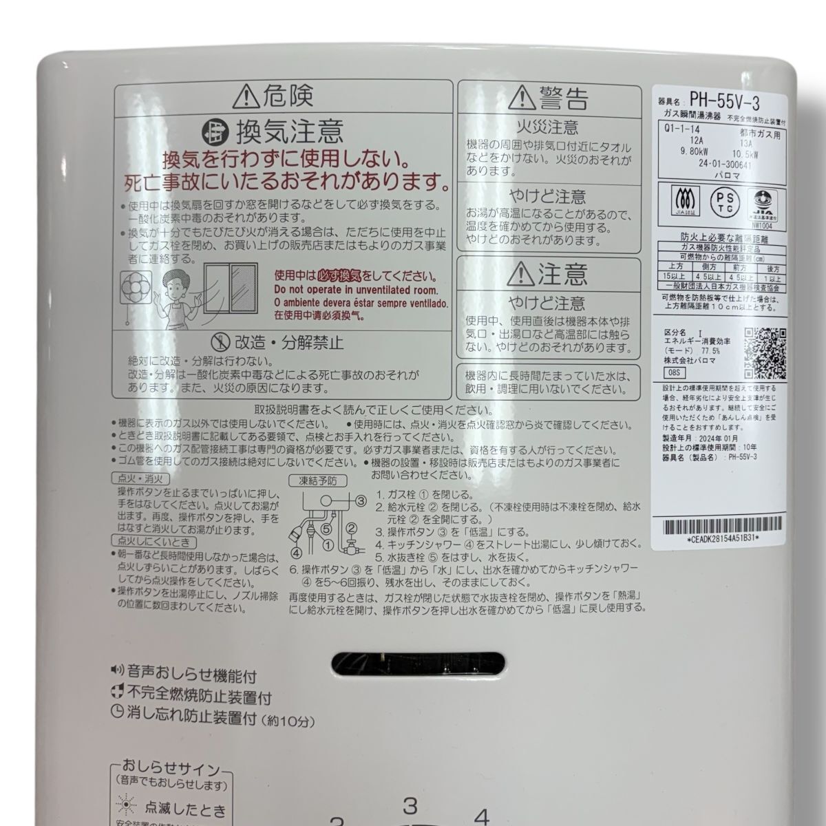 [140]●251002-546-593 TS1000【未使用品】Paloma パロマ PH-55V-3 ガス瞬間湯沸かし器 小型 防止機能 キッチン用品 現状品