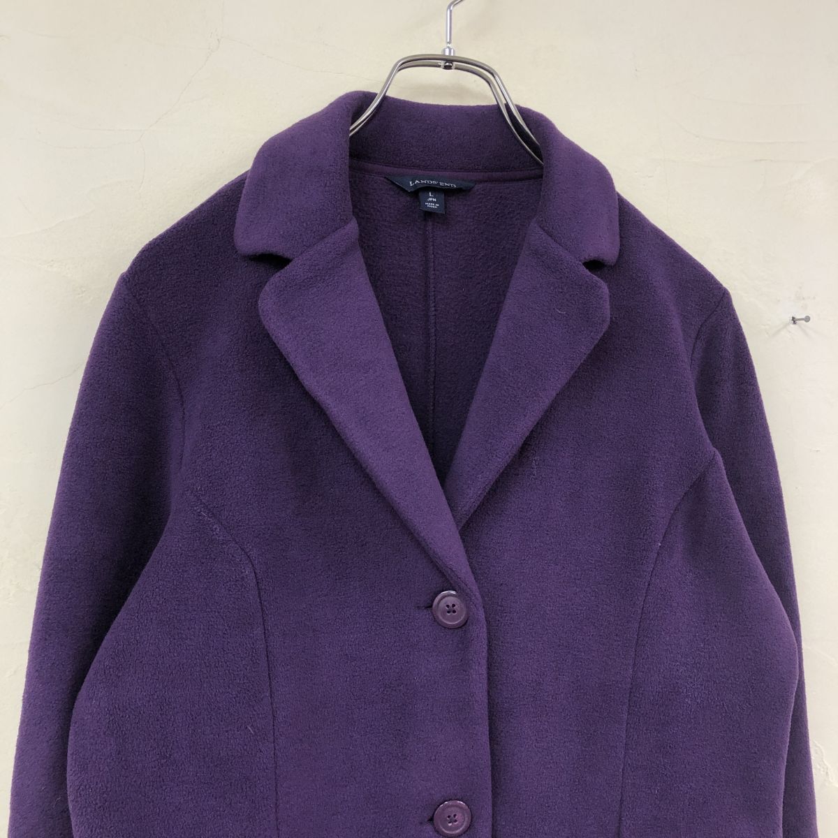 2O3225-K◆良品 LANDS'END ランズエンド フリーステーラードジャケット◆sizeL パープル 無地 軽量 暖か カジュアル レディース