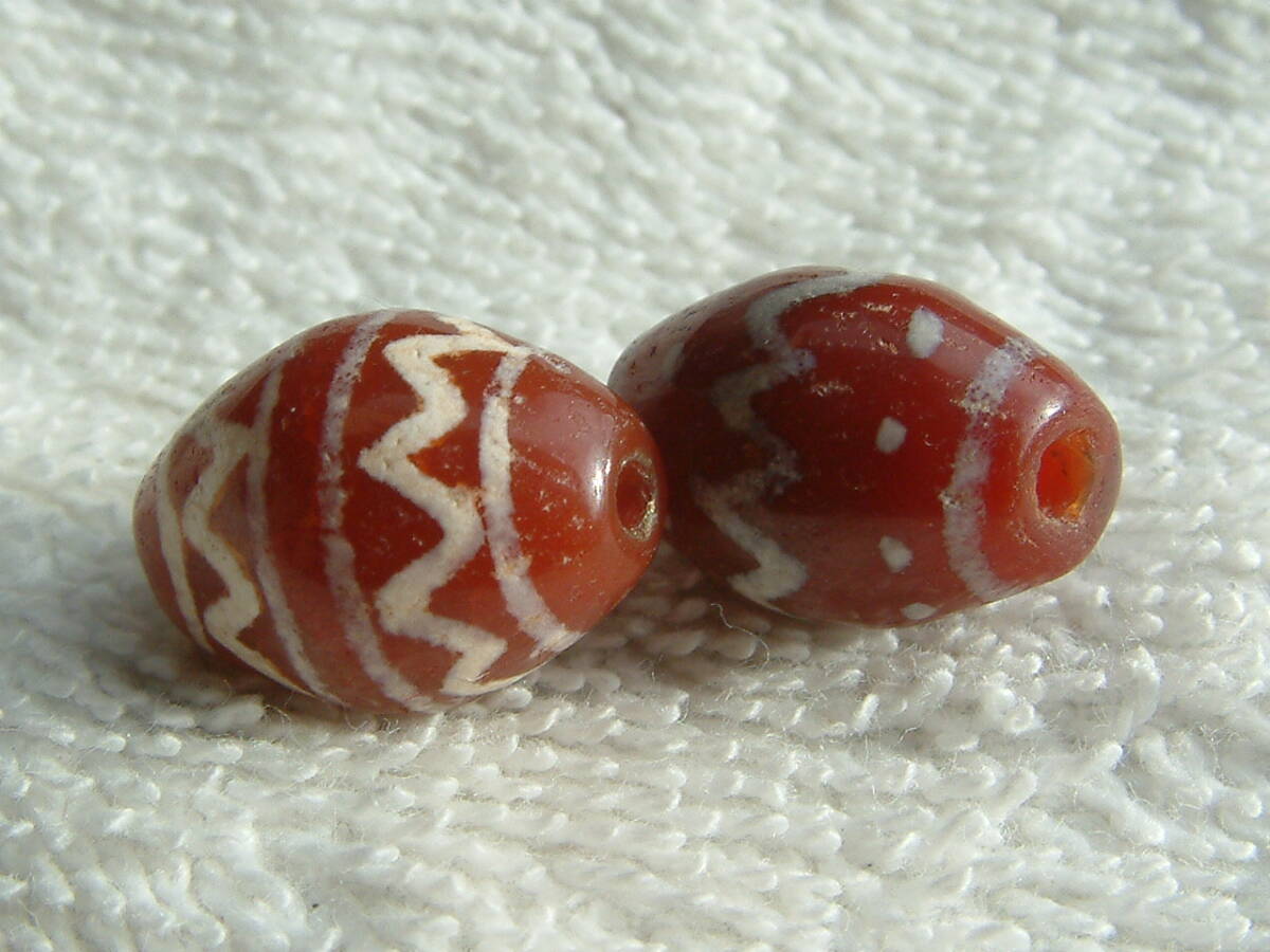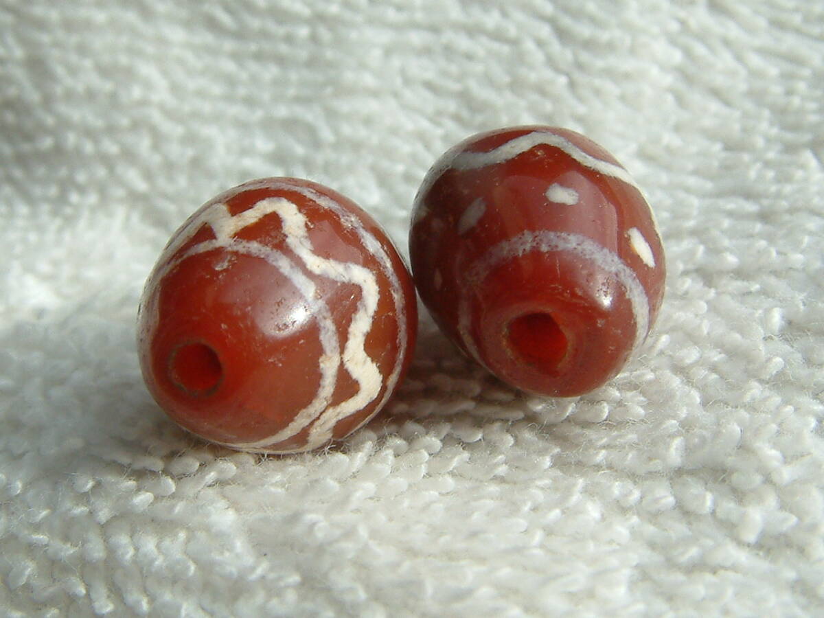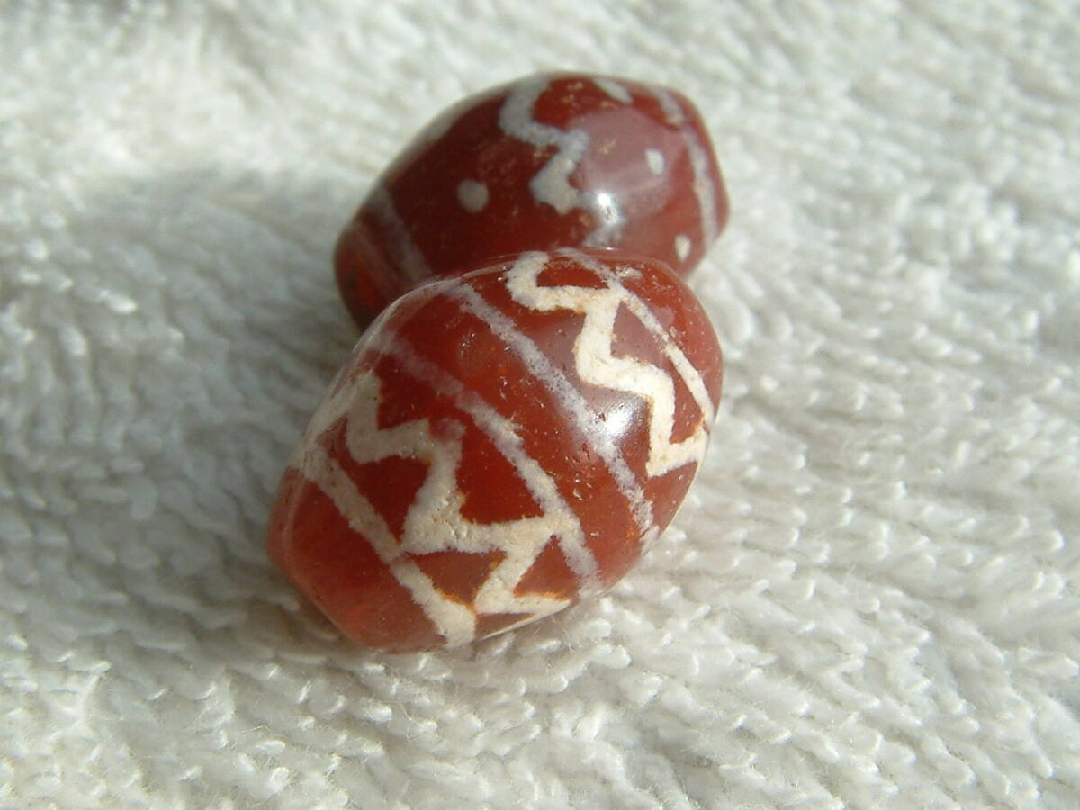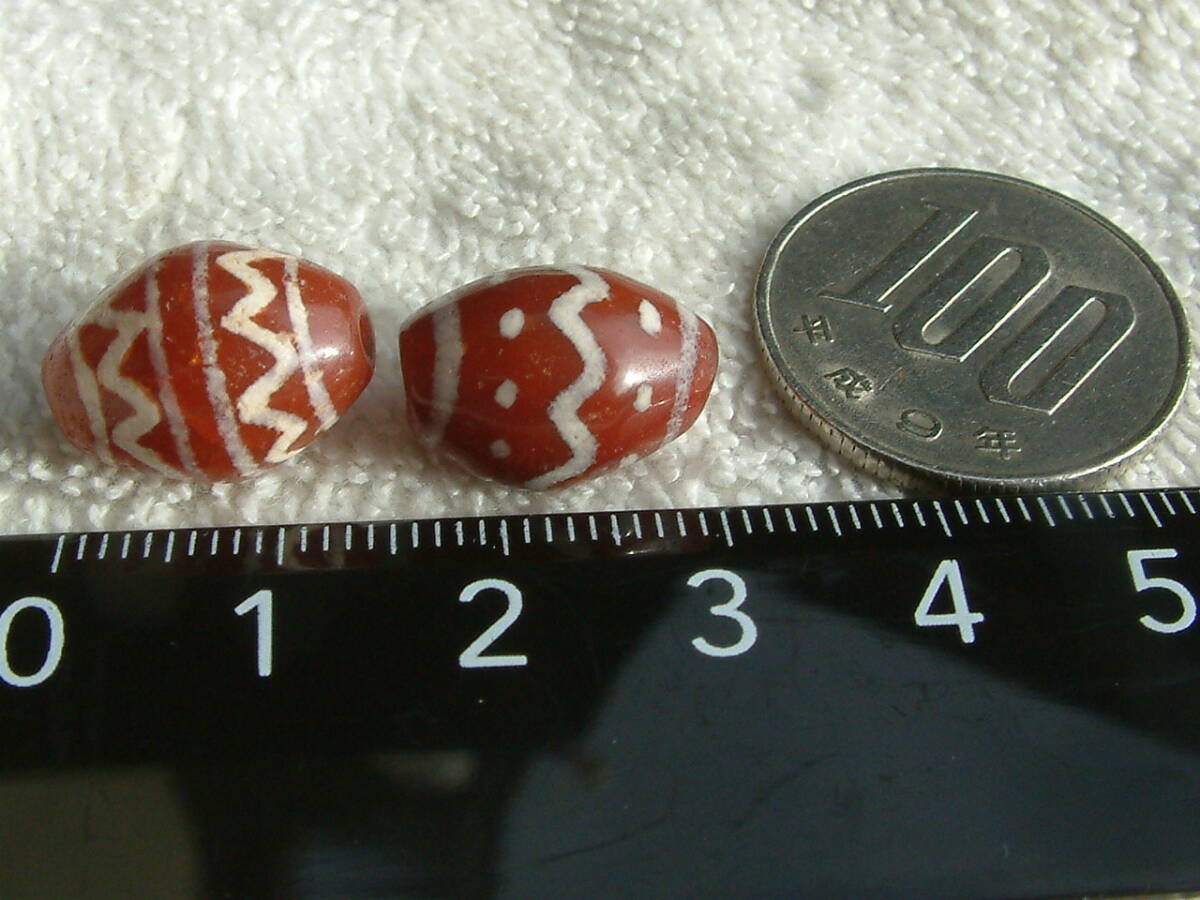 920【天珠八仙】〈作成に/エッチドカーネリアン〉..(小型現代)古代密教型図案天珠..約1.5㌢×2個で、