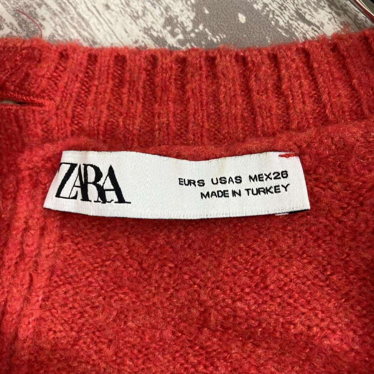 2N1109-U-N◆ZARA ザラ クルーネック ニットプルオーバー 丸首 ラグラン ボタン 短丈 ショート丈 カジュアル◆sizeS 赤 レッド オレンジ系