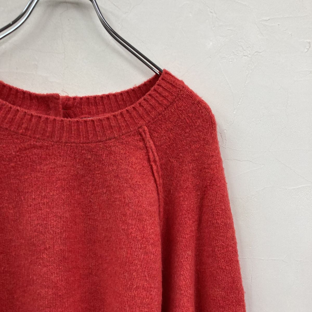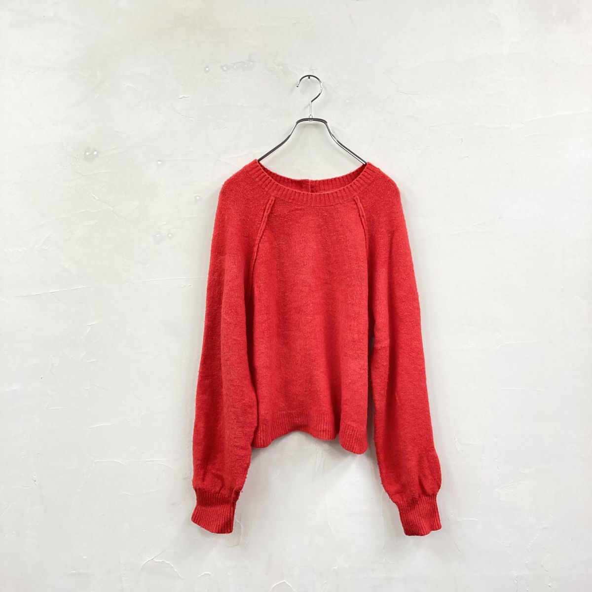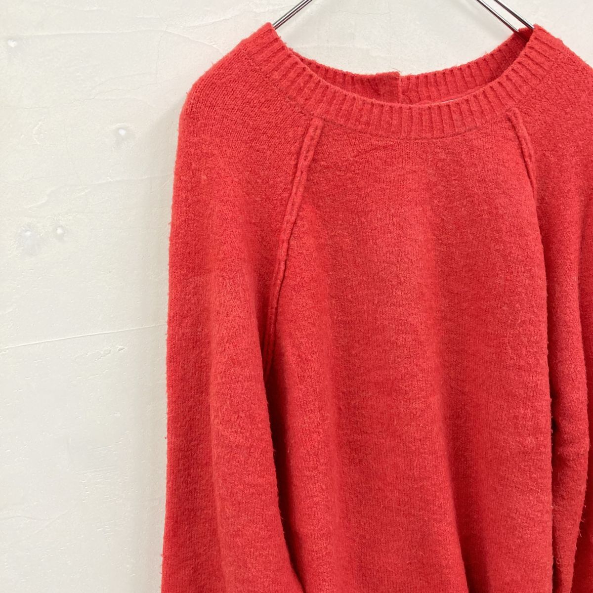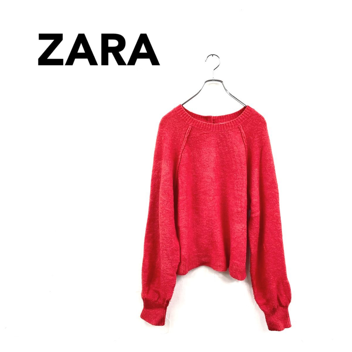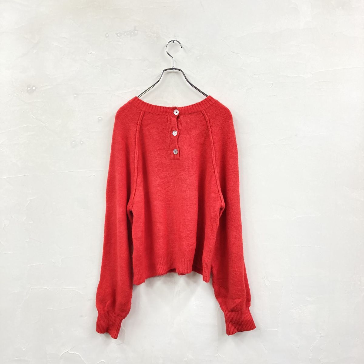 2N1109-U-N◆ZARA ザラ クルーネック ニットプルオーバー 丸首 ラグラン ボタン 短丈 ショート丈 カジュアル◆sizeS 赤 レッド オレンジ系