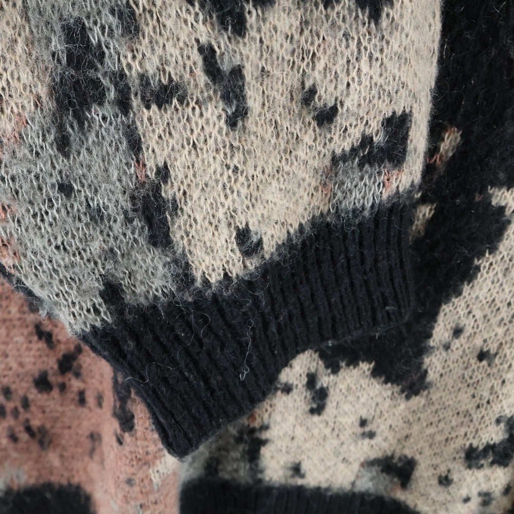 品名モヘヤミックス スプラッシュクルーネック 総柄 長袖ニットセーター マルチカラー