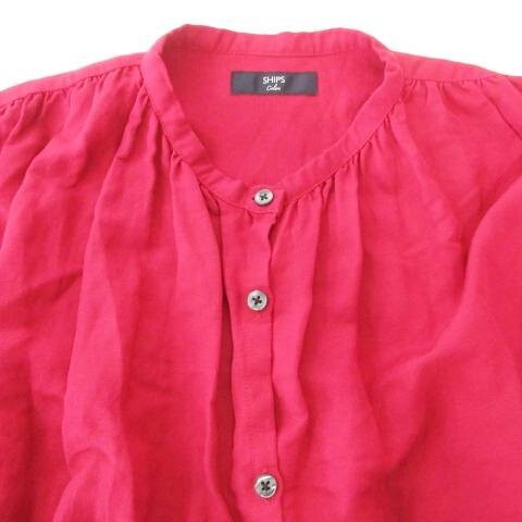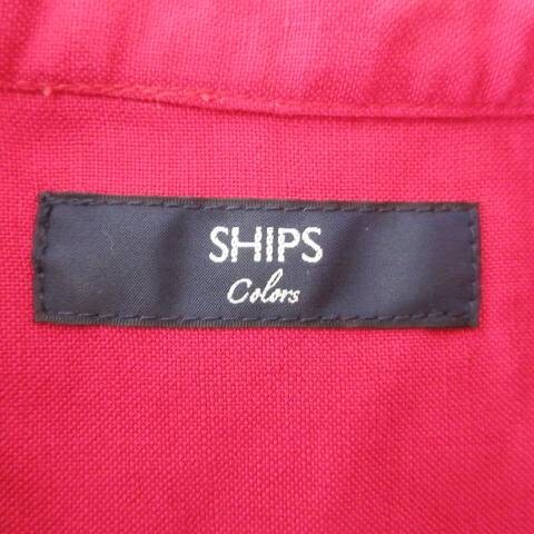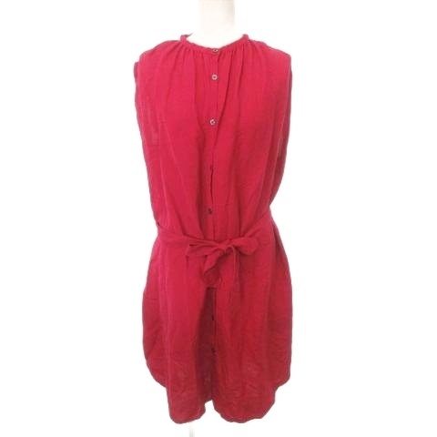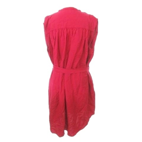 シップス SHIPS 美品 ノースリーブ シャツ ワンピース 無地 薄手 約Lサイズ 赤 レッド ■YHS7 レディース