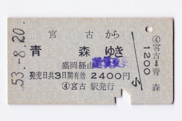 ●国鉄●山田線【 宮古から青森ゆき 盛岡経由 2400円 】A型券 昭和53年 宮古駅発行【00056】