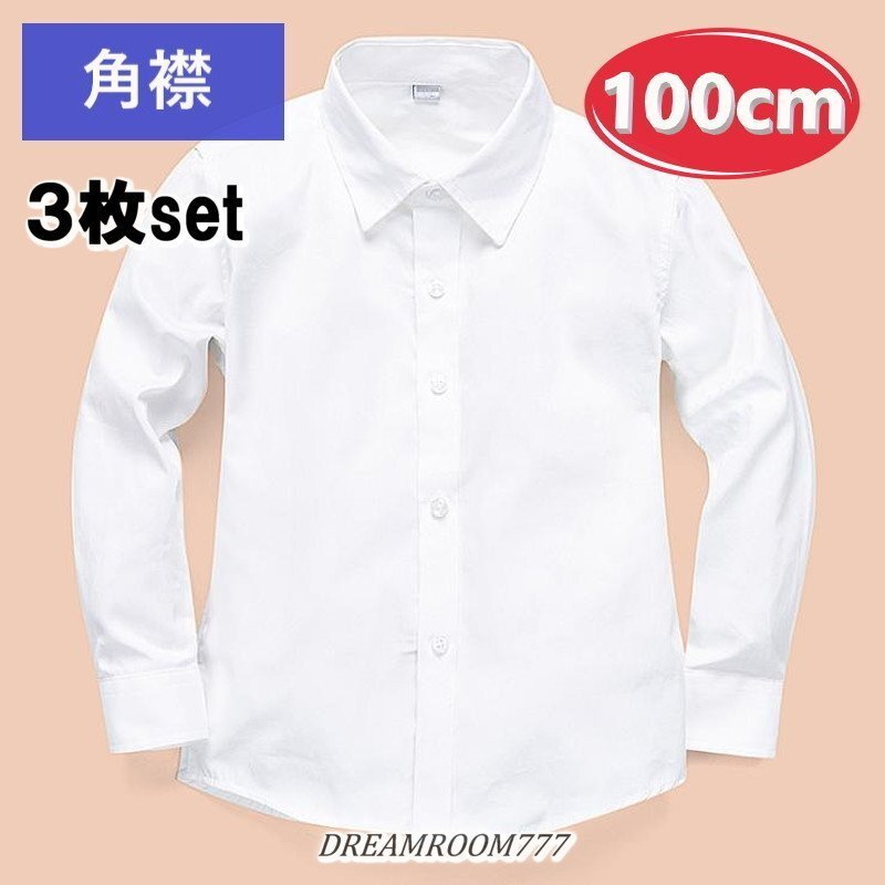 お得な3枚set★綿100% 角襟 ブラウス【100cm】ワイシャツ 白シャツ 学生服 フォーマル 冠婚葬祭 制服