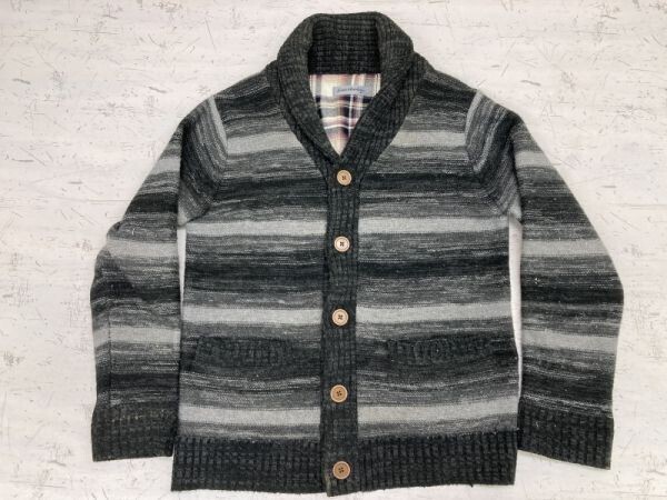 LOUIS CHAVLON ルイシャブロン ネオお兄系 Y2K古着 ショールカラー ジャガードボーダー 裏地チェック ニット カーディガン メンズ M グレー です。