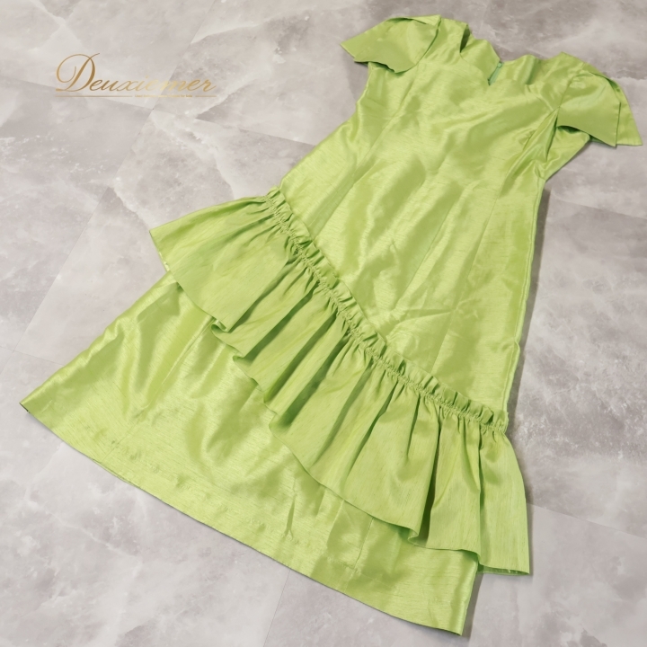 | 【商品名】フラダンス衣装 ワンピース ドレス 【サイズ】表記無し 平置き実測:総丈約121cm(裾~肩部まで)、肩幅約37cm、身幅約50cm、ウエスト約44cm ※実測の為、多少の誤差はご了承ください 【仕様】 ・背面ファスナー仕様 ・伸縮性無し 【品質表示】 表示無し ------------------------------------ 【ポイント】 ▽鮮やかなグリーン ▽光沢のある生地 ▽フリルで華やかな印象に ------------------------------------ 【撮影時使用トルソー】 種 類:女性用トルソー9号 (一般的に使用されるサイズです) サイズ:肩先~床約135cm(身長約160cm)、肩幅約37cm、バスト約88cm、ウエスト約66cm、ヒップ約89cm |
