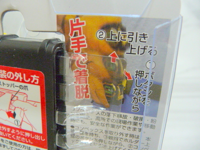 片手で簡単脱着できる、落下防止用ベルトホルダー付
