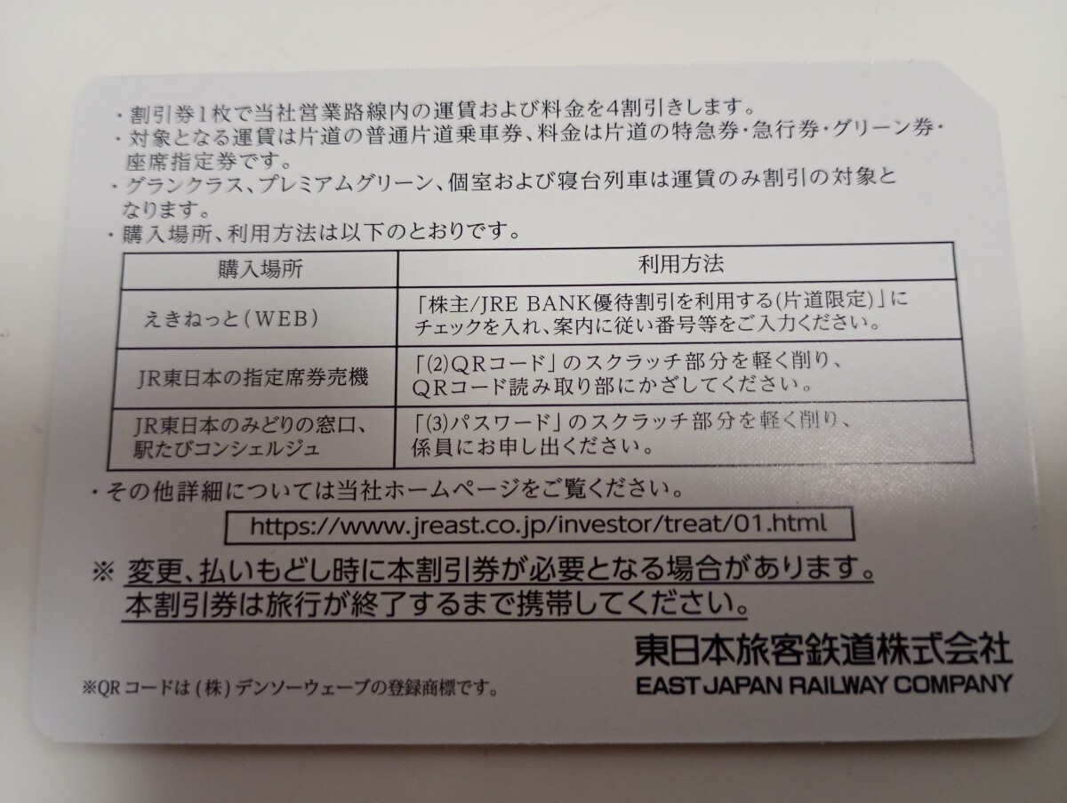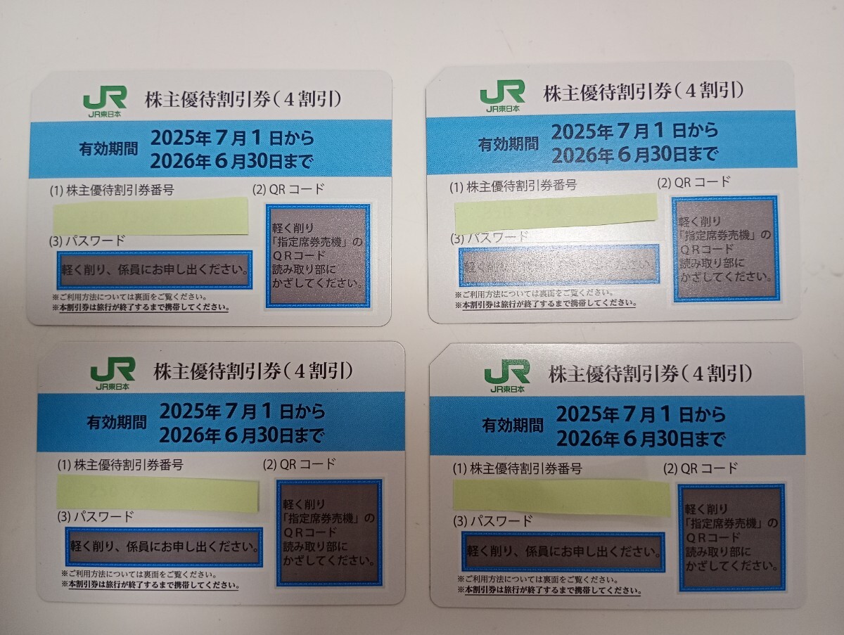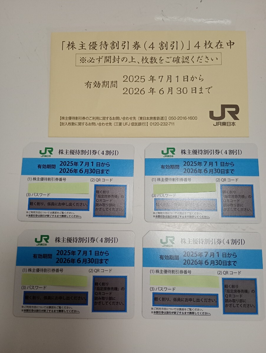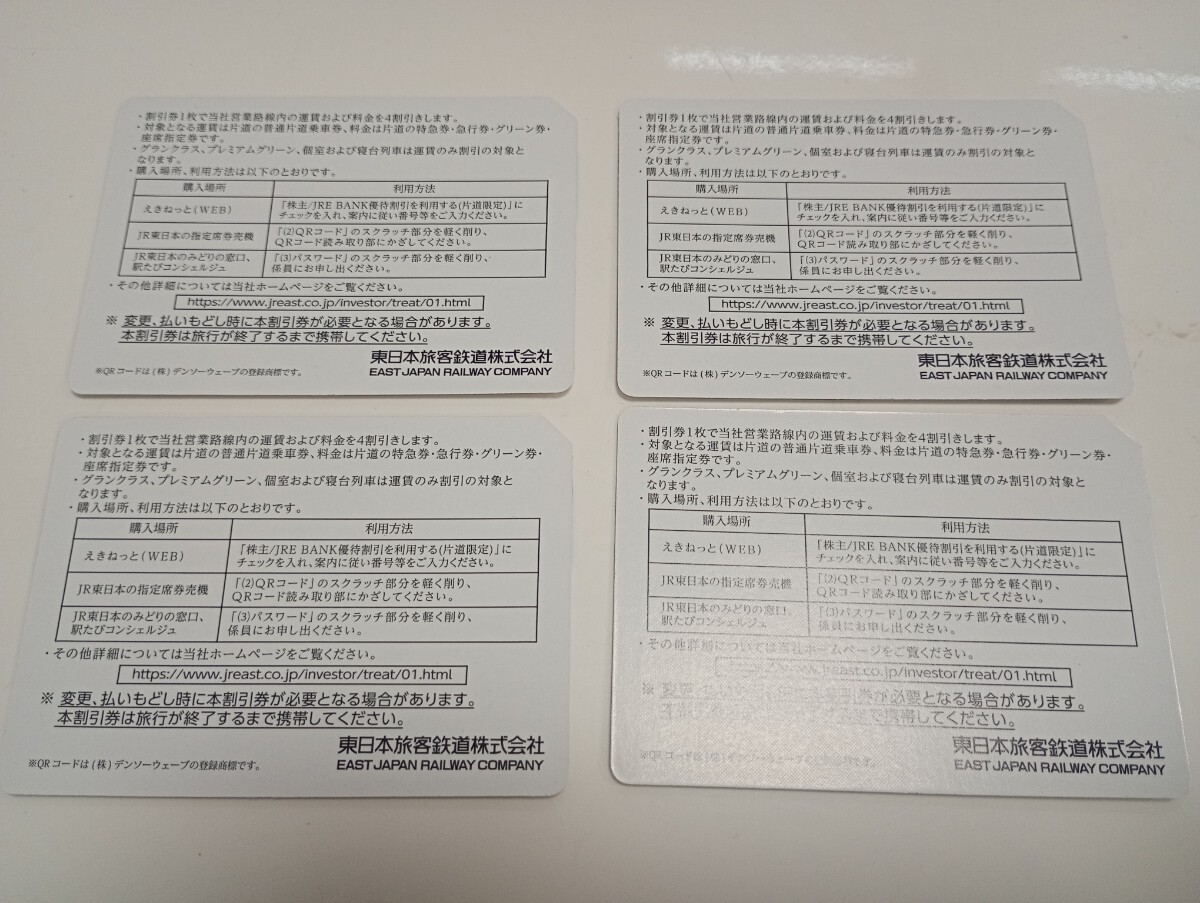 【未使用品】JR東日本旅客鉄道 株主優待割引券 4枚