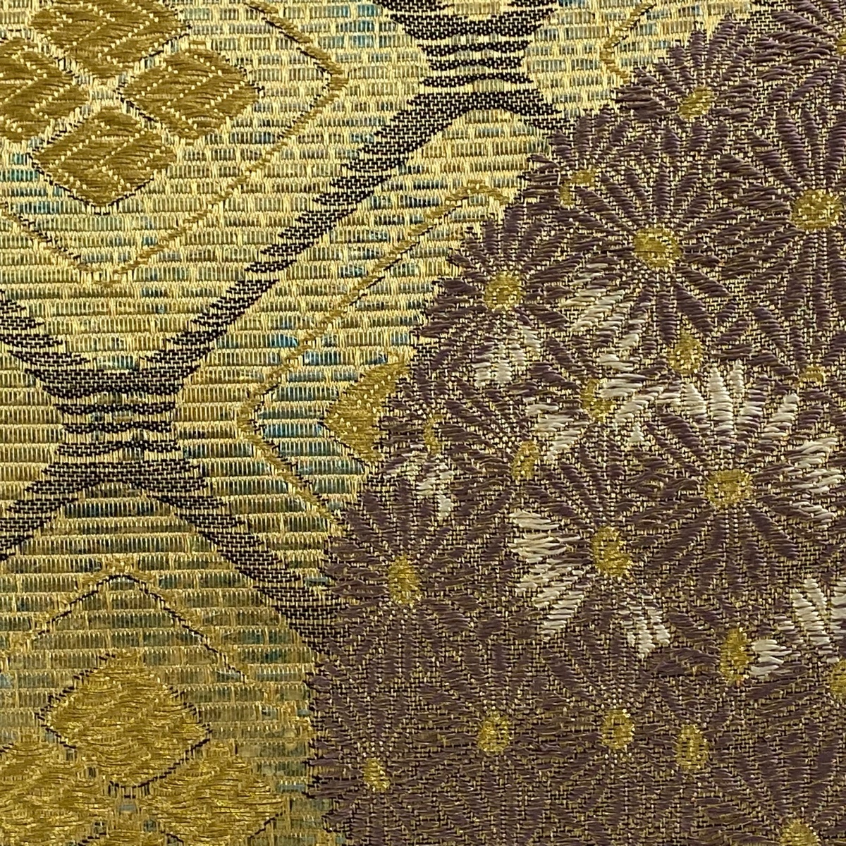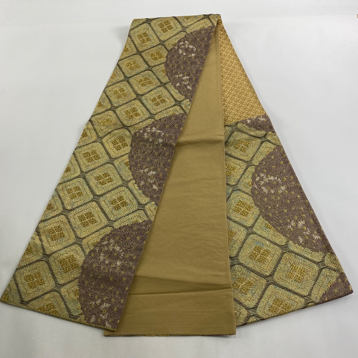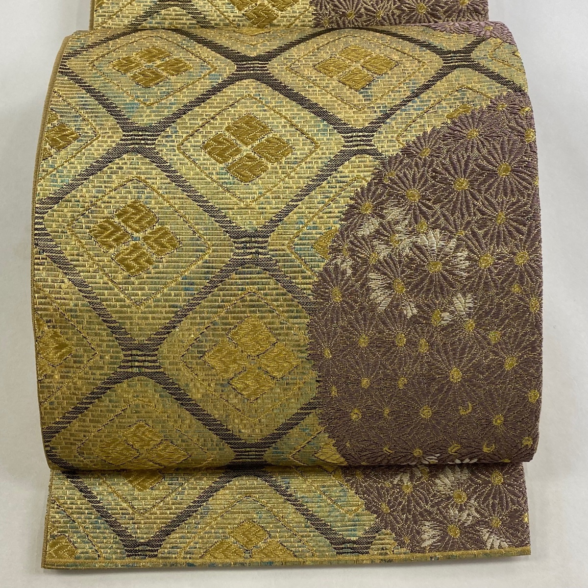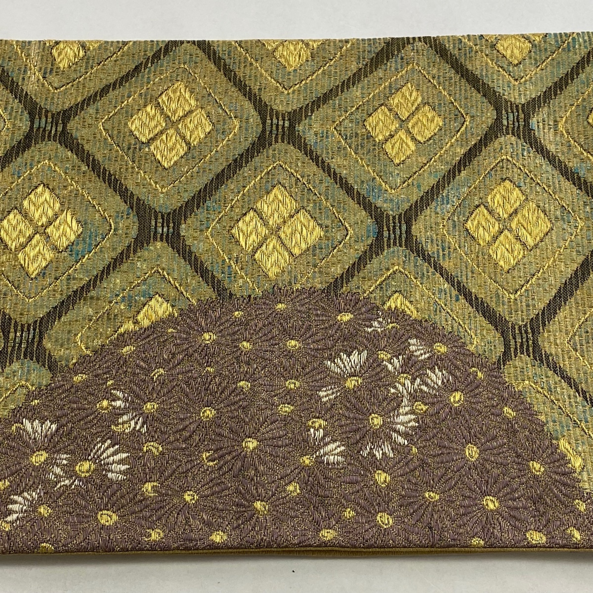 | 袋帯 美品 秀品 菊 菱 金糸 金色 六通 正絹 【中古】 |