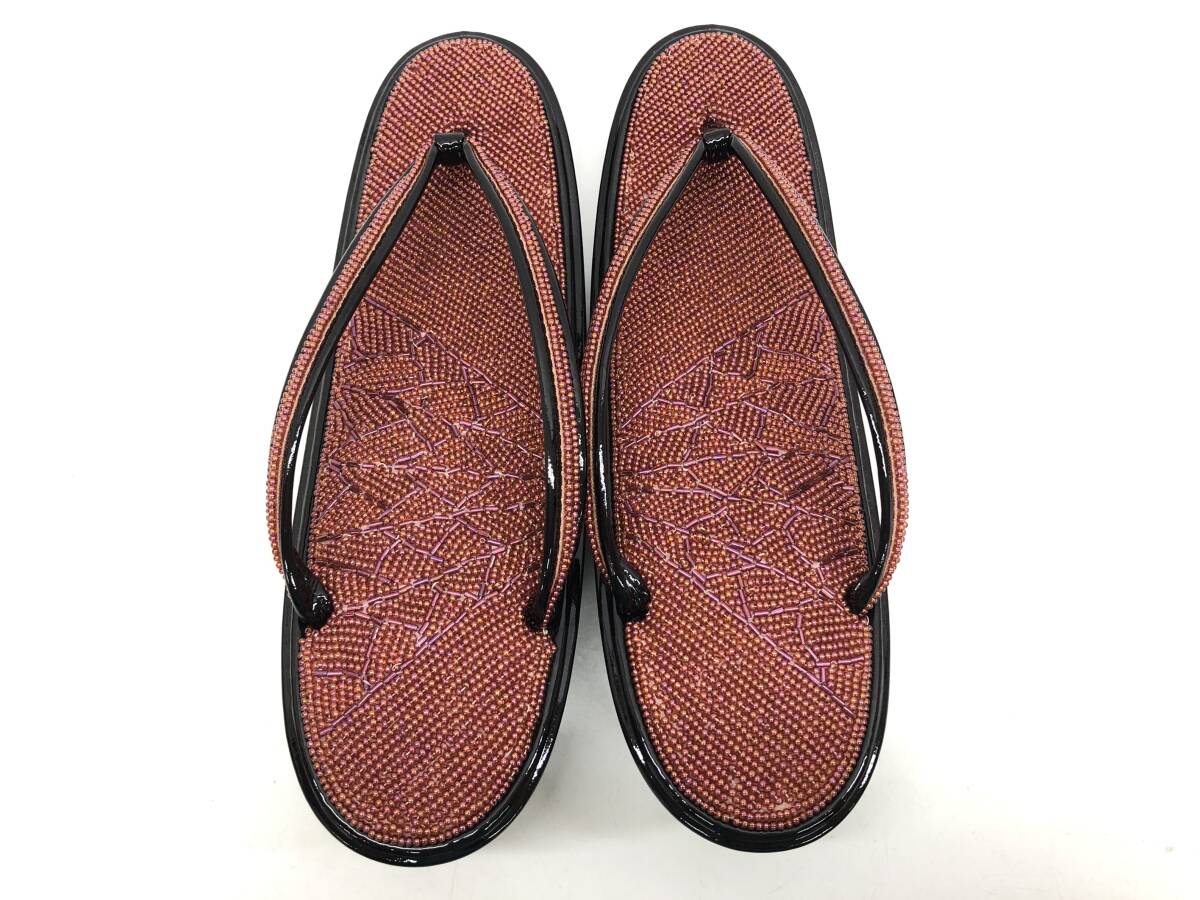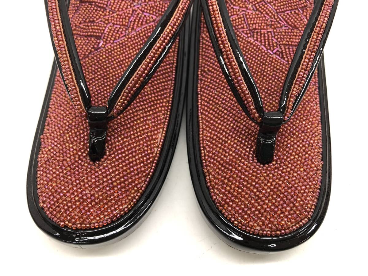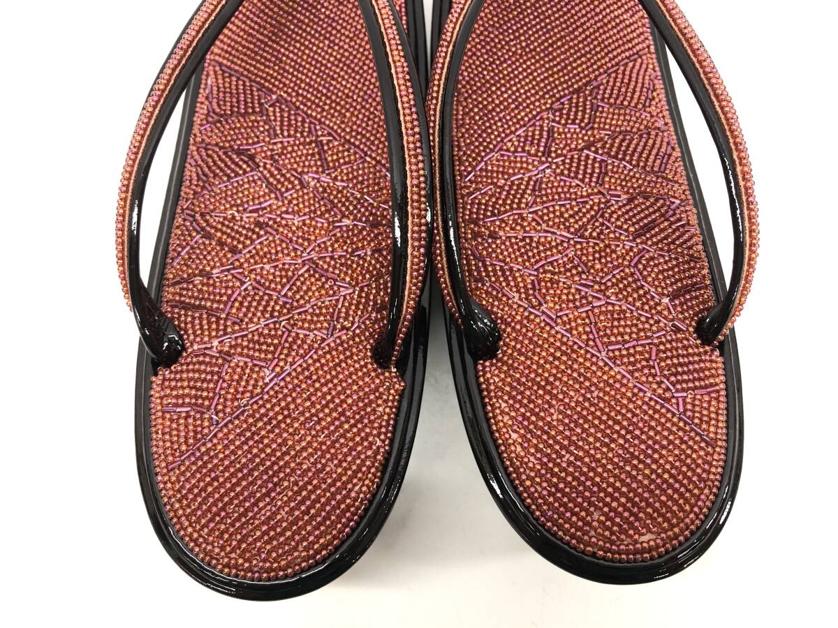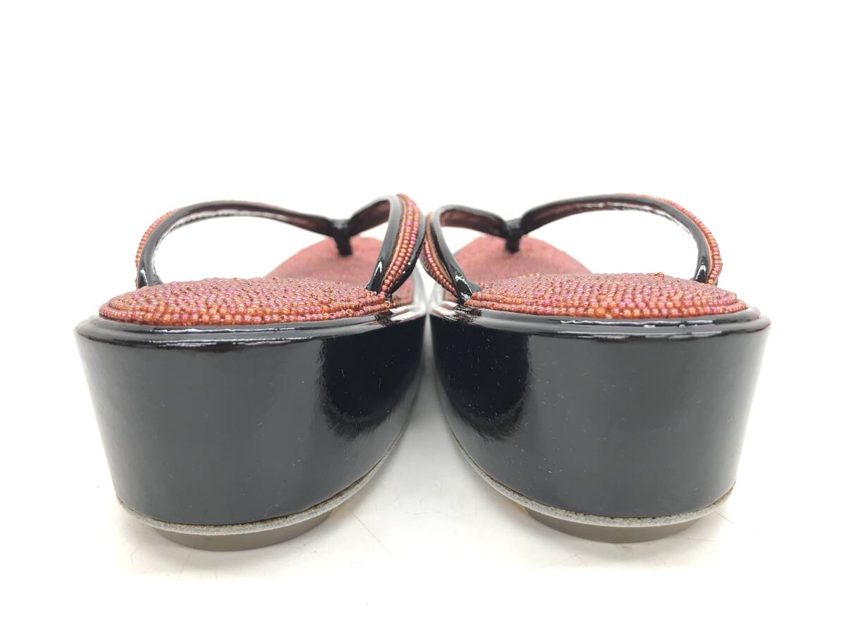| 未使用 保管品 女性用 レディース ビーズ草履 草履 履物 23.5㎝ ヒールの高さ4.8㎝ ピンクパープル×ブラック 着物 和服 和装小物 箱付 |