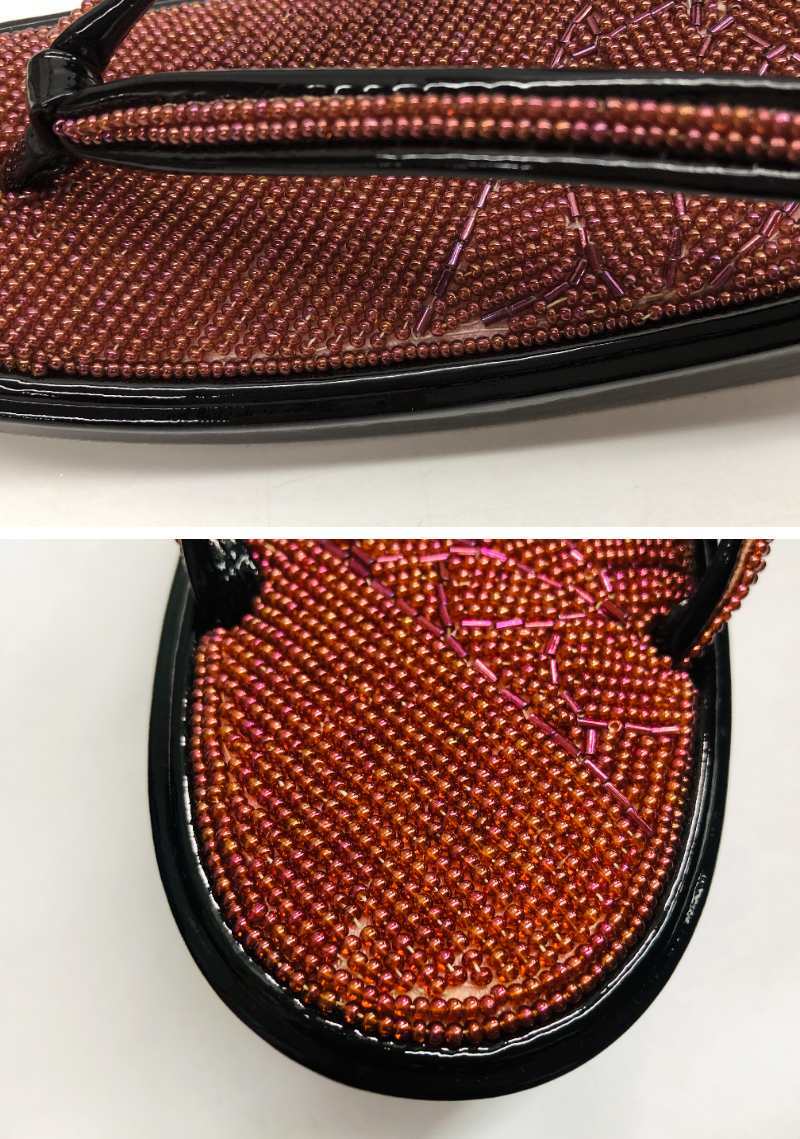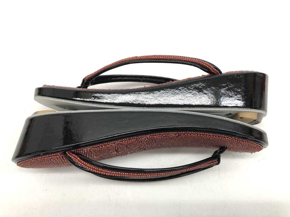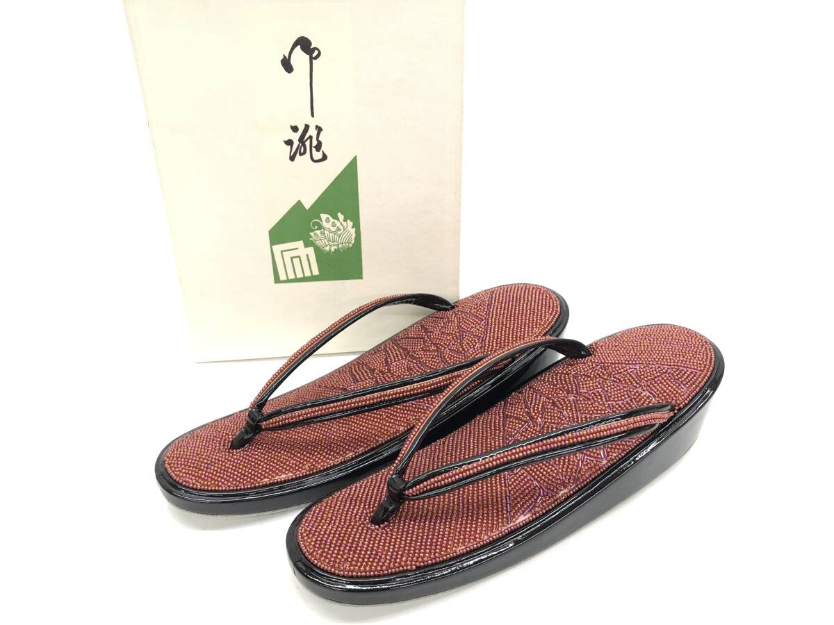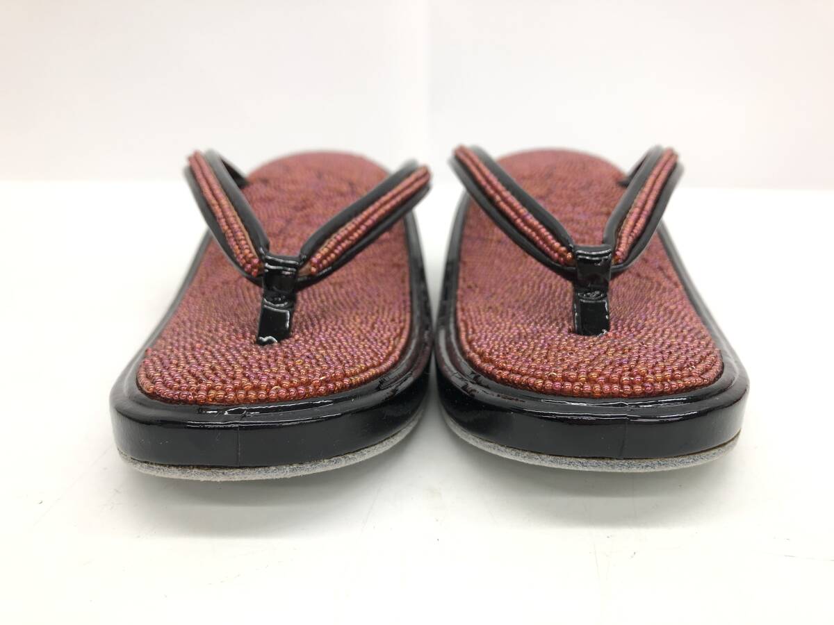 | 未使用 保管品 女性用 レディース ビーズ草履 草履 履物 23.5㎝ ヒールの高さ4.8㎝ ピンクパープル×ブラック 着物 和服 和装小物 箱付 |