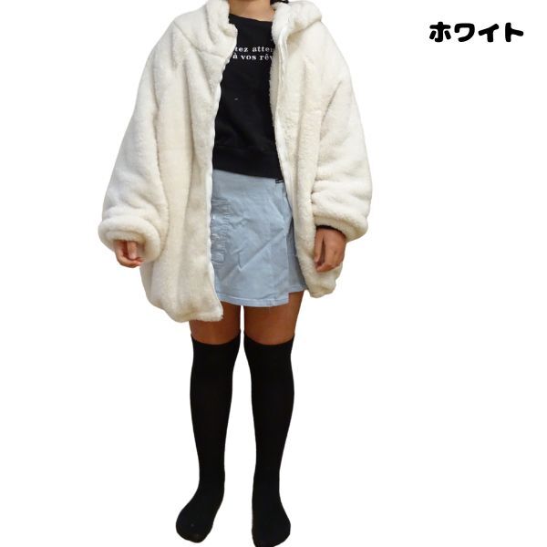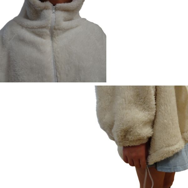 モコモコファー ホワイト XL 部屋着 フーディー フェイクファー パーカー ボアパーカー アウター レディース 秋 冬 エコファー