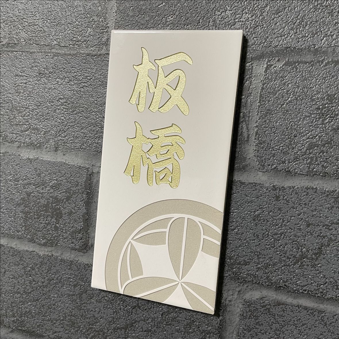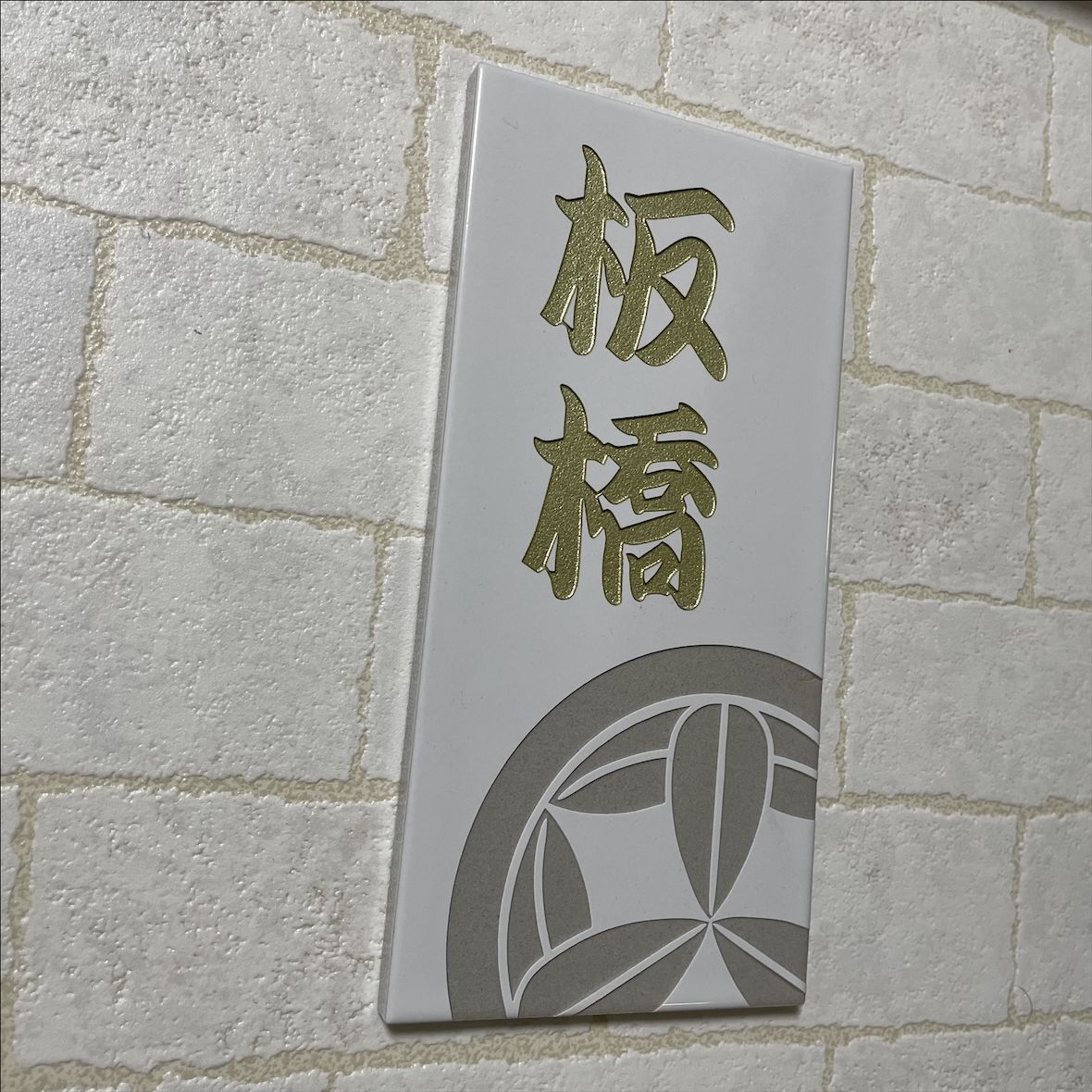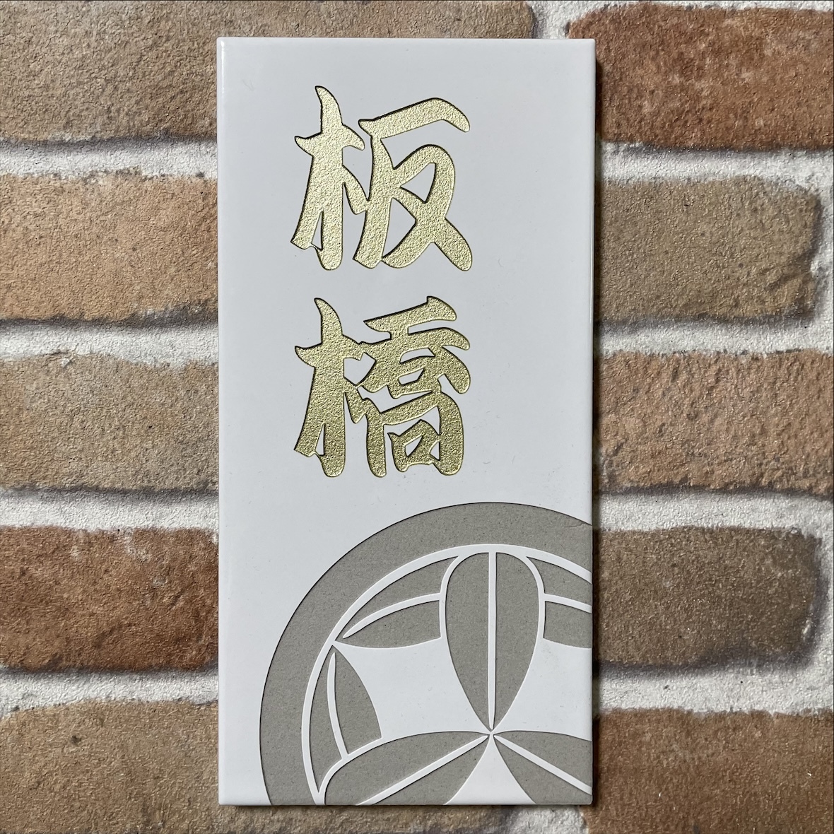 写真のとおり「板橋 丸に九枚笹」 と既に彫刻されており、このまま送付となります。