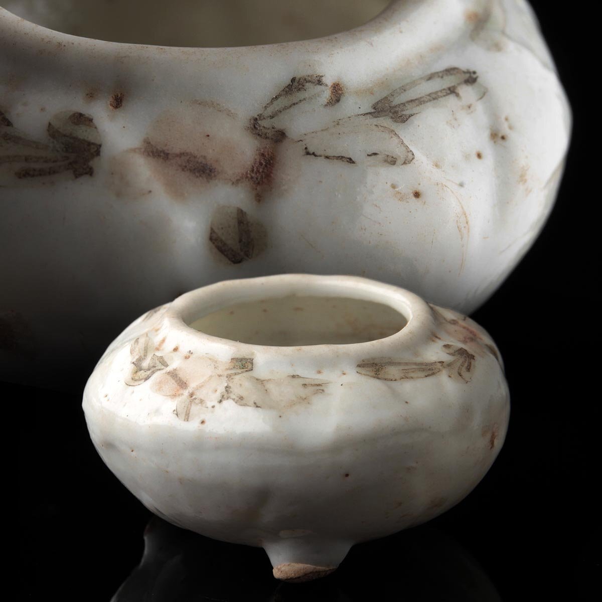 | ◆ 中国美術 小振 白磁色絵花文三足小香炉・浅絳彩花卉紋三足小炉・水盂 中国古陶磁 中国古玩 古美術 ◆