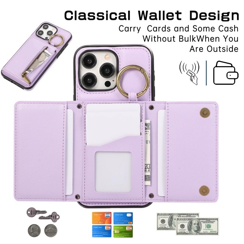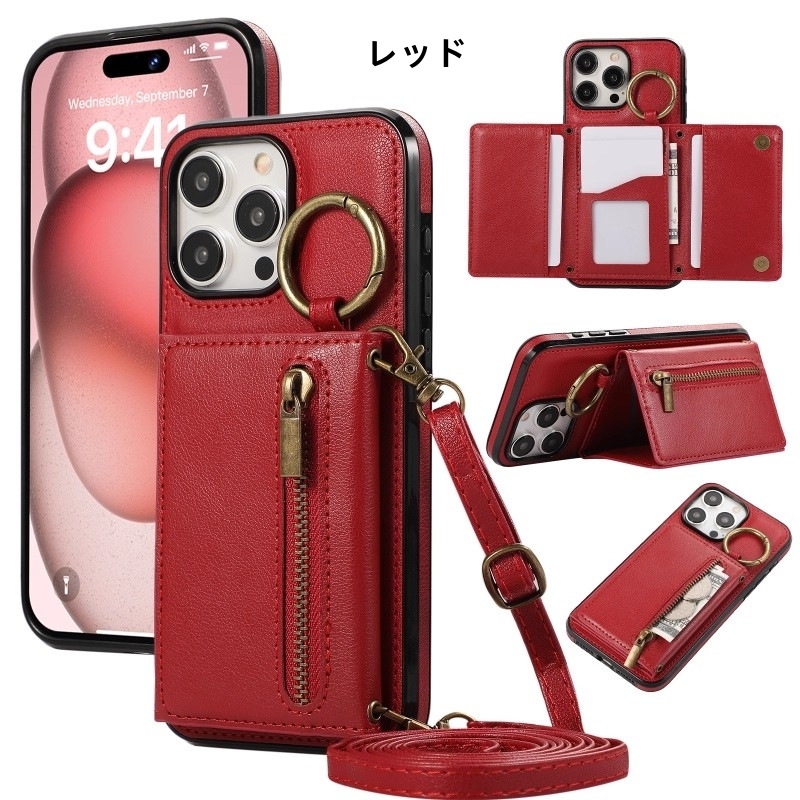 iPhone17 (6.3インチ) ケース 三つ折り 指リング付き ラウンドジップ カード収納 斜め掛け ロングストラップ スマホカバー 防 保護カバー | |||