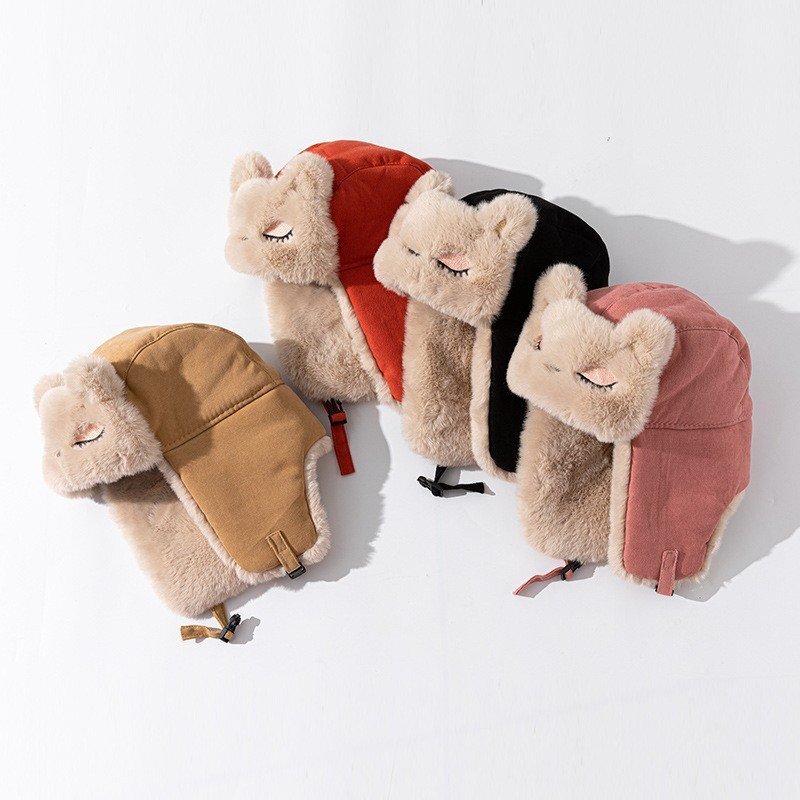 パイロットキャップ フライトキャップ オレンジ 耳あて付 防寒帽子 ロシア帽子 自転車 登山 通学 散歩 冬 暖かい