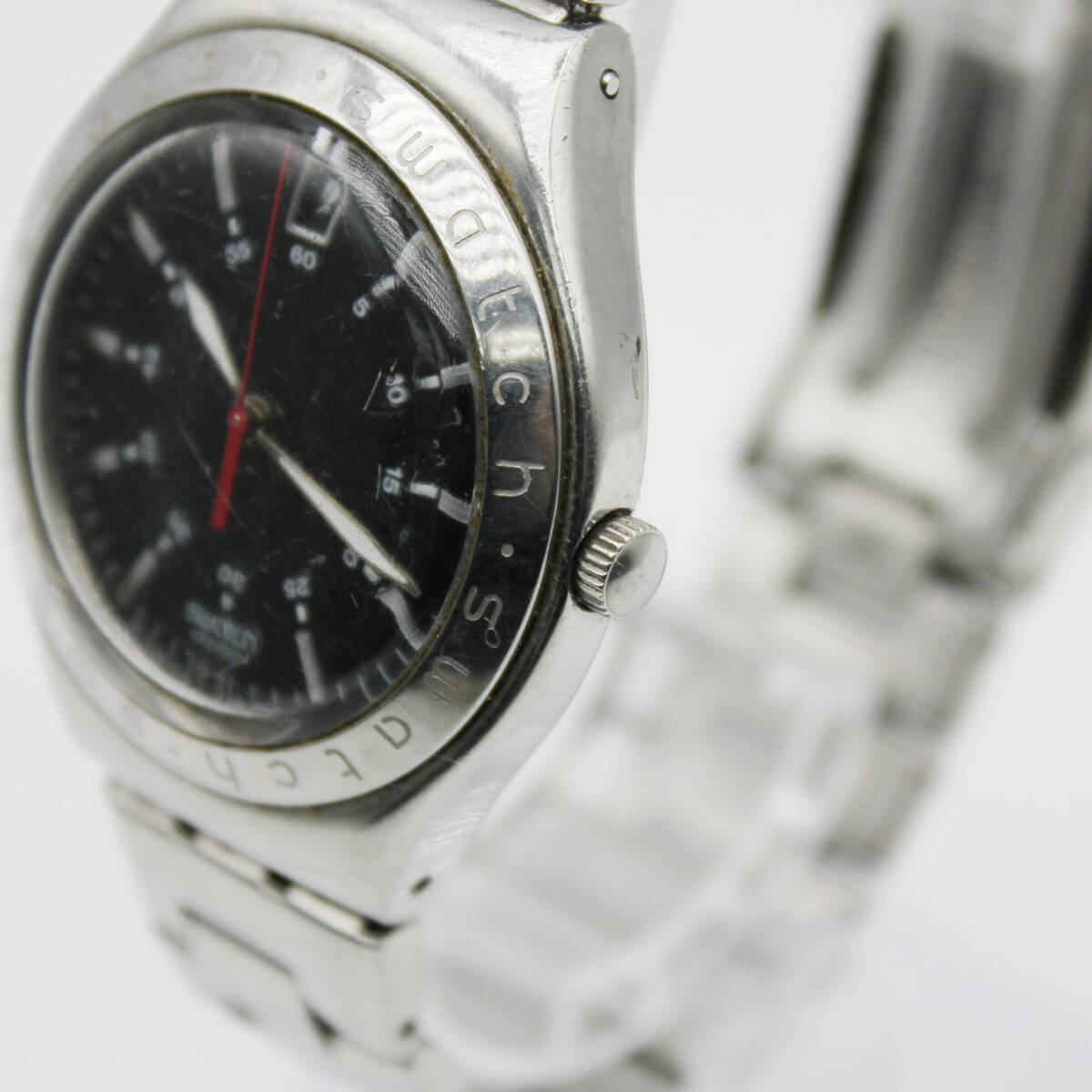 W251031-47 swatch SWISS IRONY スウォッチ メンズ腕時計 クォーツ デイト ジャンク 文字盤ブラック スイス製