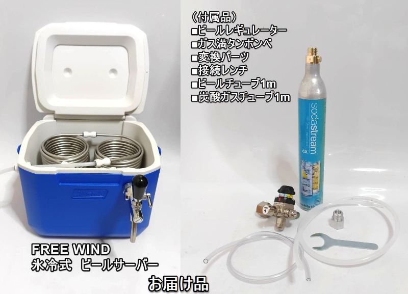 | 【1セット限定・お買い得!】 新品!氷冷却式 ビールサーバー(コールマン クーラーボックス仕様) お得な炭酸ガス添加セット ガスシリンダー⇔ミドボン両方で使用可能 冷えたビールを、屋外でもご自宅でも手軽に楽しめる本格派ビールサーバーを、1セット限定の特別価格でご提供いたします。 在庫がなくなり次第、販売終了となりますので、お早めにご検討ください! 【商品の特長】 ◎氷冷却式でしっかり冷える! 38m(19×2)のロングコイル仕様で、しっかり冷えたビールが楽しめます。 ◎ 泡出し機能&アシスト弁付き! クリーミーな泡を自由に調整可能。泡とビールの絶妙なバランスで、まるでお店の味をご自宅で。 ◎クーラーボックスはコールマン製 耐久性に優れ、アウトドアでも大活躍! サイズ:横39×奥行31×高さ29cm ◎ 安心のメーカー3か月保証付き はじめての方も安心!メールサポート付きで、使い方のフォローも万全です。 【セット内容】 お届けする商品は、3枚目の画像(お届け品)の内容になります。 説明書付き ※ビールレギュレーター(中古品)になります。 ガスシリンダーはリサイクル品になります。(ガスは満タンに入っています) ※画像の以下のものは付属しておりません: ・ミドボン ・ディスペンサー 【アシスト弁の使い方】(泡調整のコツ) まずは通常のレバー操作でビールを注ぎます 次にアシスト弁を少しずつ開けて、泡の量をお好みに調整! 泡を多くしたいとき:弁を少し開ける 泡を少なくしたいとき:弁を閉じ気味に コツをつかめば、ご家庭でも「極上の一杯」が味わえます! キンキンに冷えたビールで乾杯しませんか? ぜひこの機会をお見逃しなく! ご不明点がありましたら、いつでもお気軽にお問い合わせください。 ご検討のほど、よろしくお願いいたします。 (発送方法) ヤマト運輸(全国送料無料)にて商品発送させていただきました。 | ||