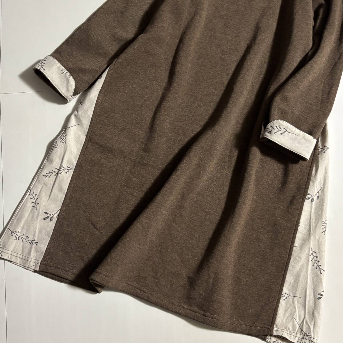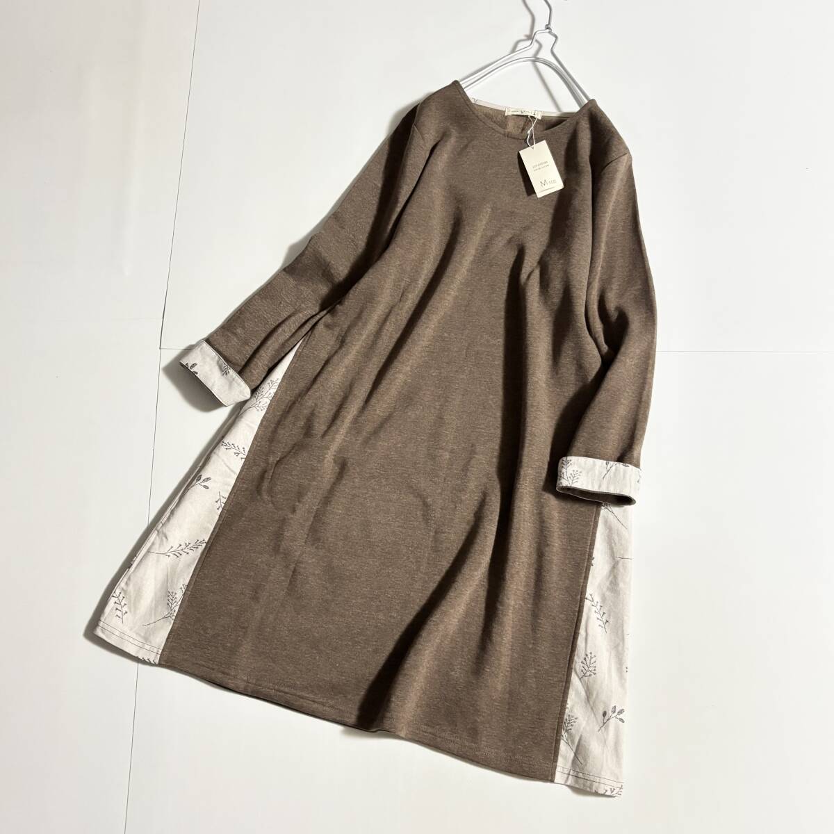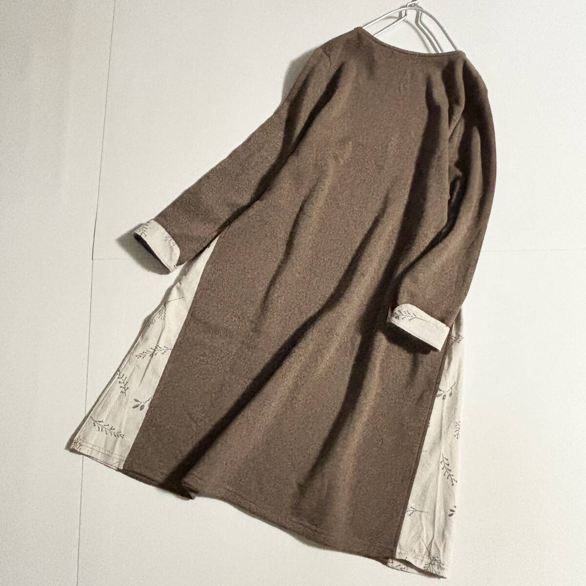 新 ノンノ CROSS TALK CLUB クロストーククラブ サイズM // ココア系 植物柄切り替え 裏地フリース ワンピース ⑥