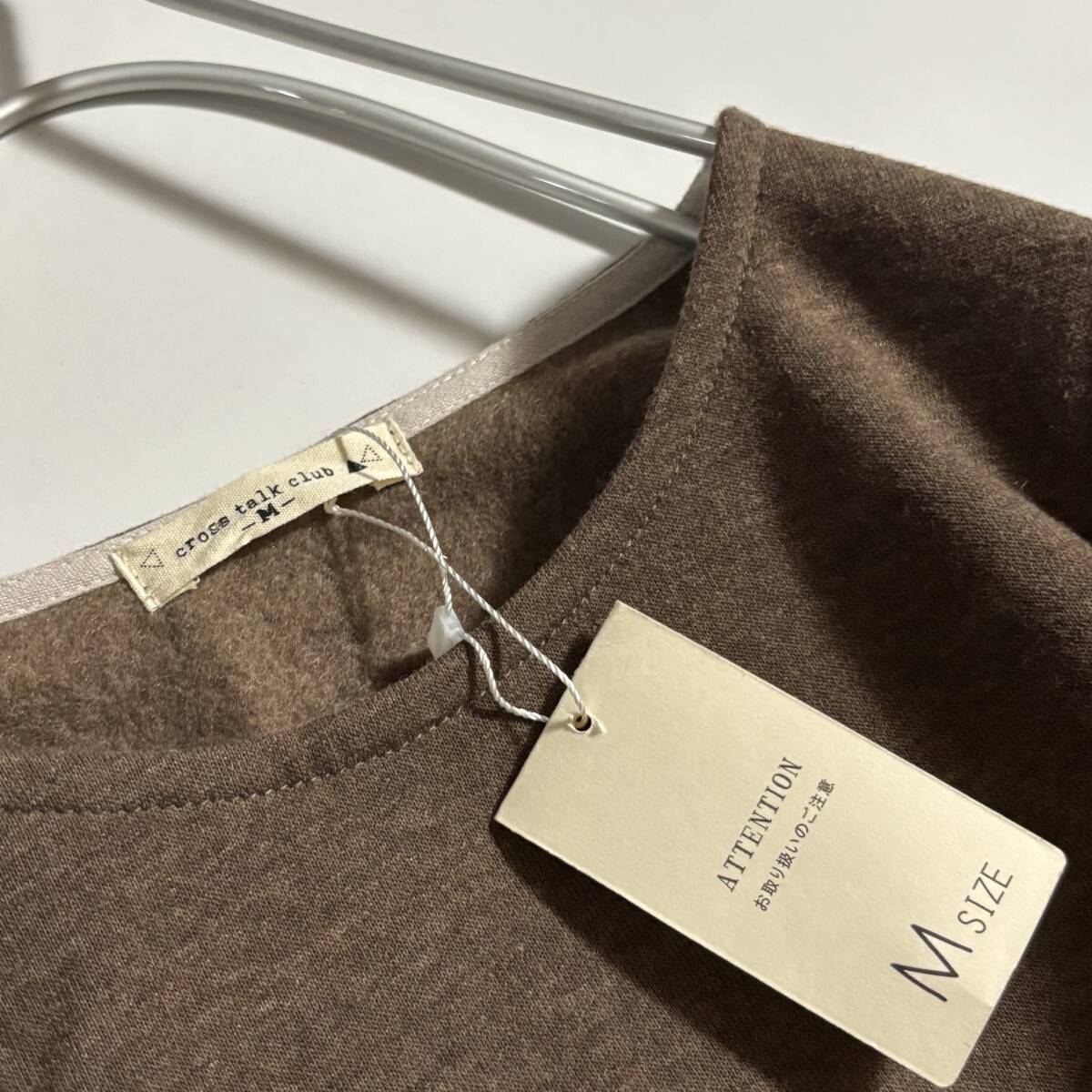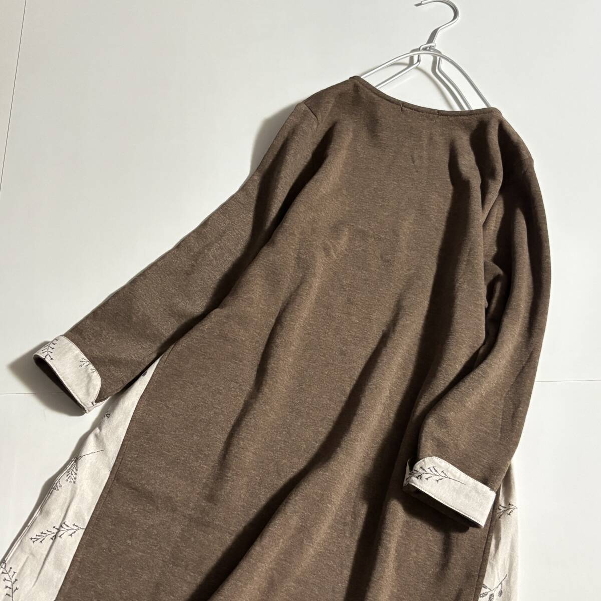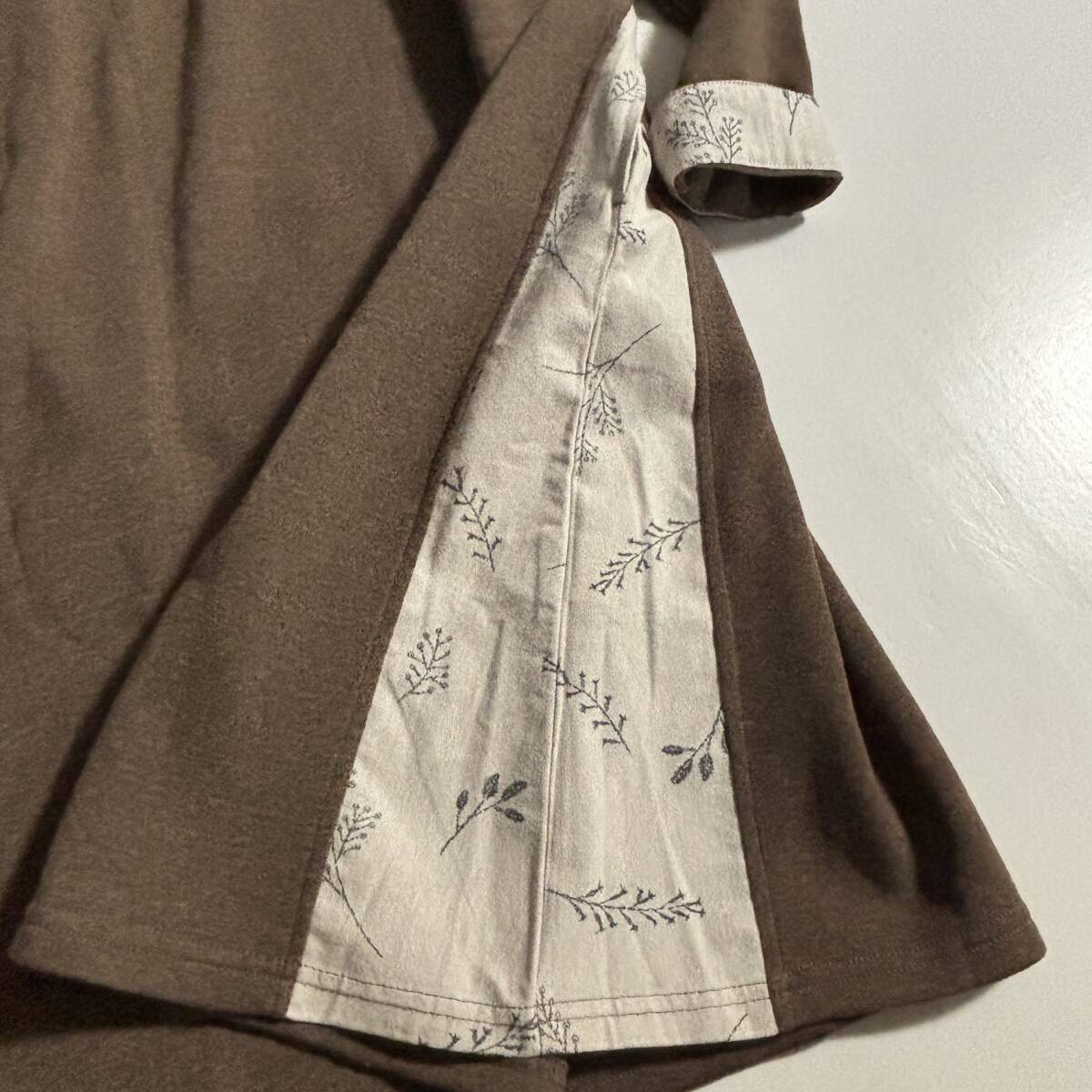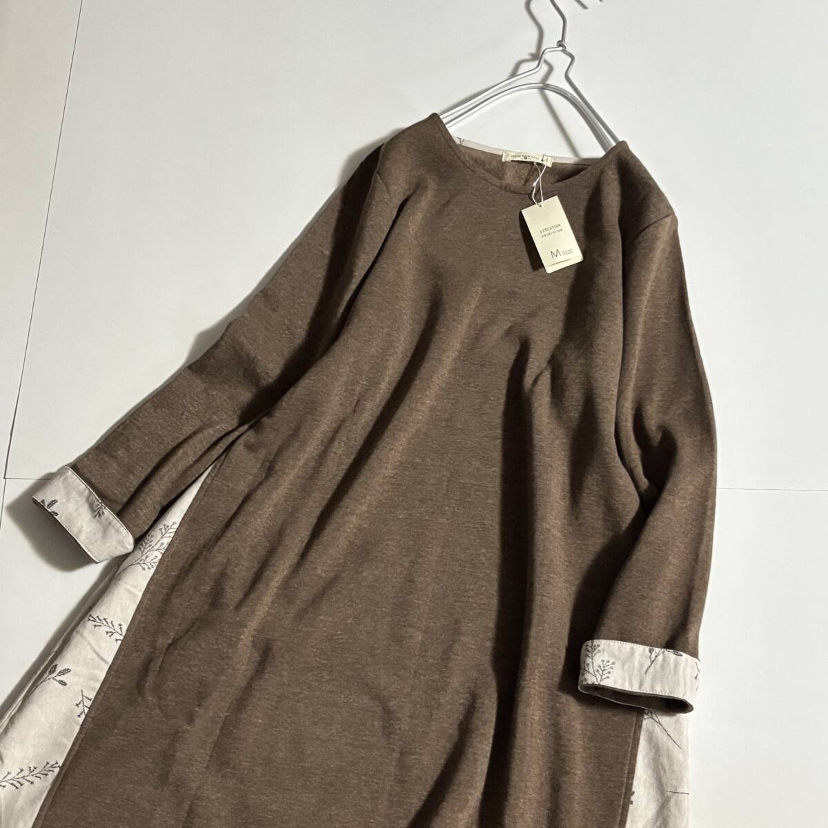 新 ノンノ CROSS TALK CLUB クロストーククラブ サイズM // ココア系 植物柄切り替え 裏地フリース ワンピース ⑥