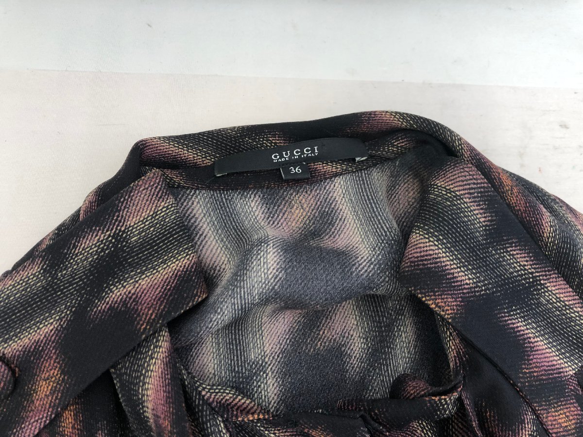 【GUCCI】 グッチ ノースリーブブラウス ブラック×エンジ系カラー 総柄 シルク100% 表記サイズ:36 トップス シャツ SY02-G1F