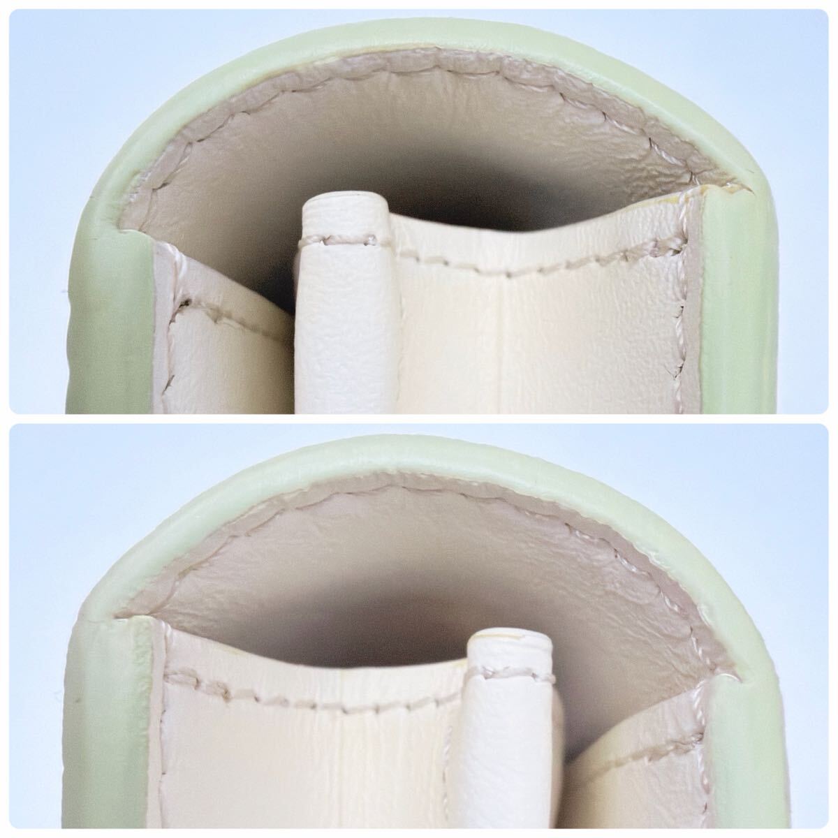 僅かにスレ・汚れ(色移り)・コイン跡・型崩れ・縁ヒビ・カードポケット端小さな切れ・香水の匂いあり。