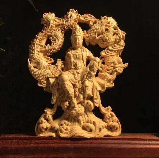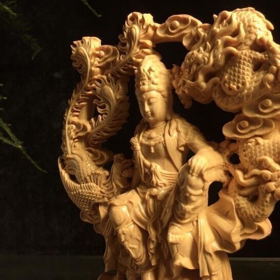 新入荷★観音菩薩 木彫 縁起物 細密彫刻 龍鳳呈祥-自在観音 仏像 置物